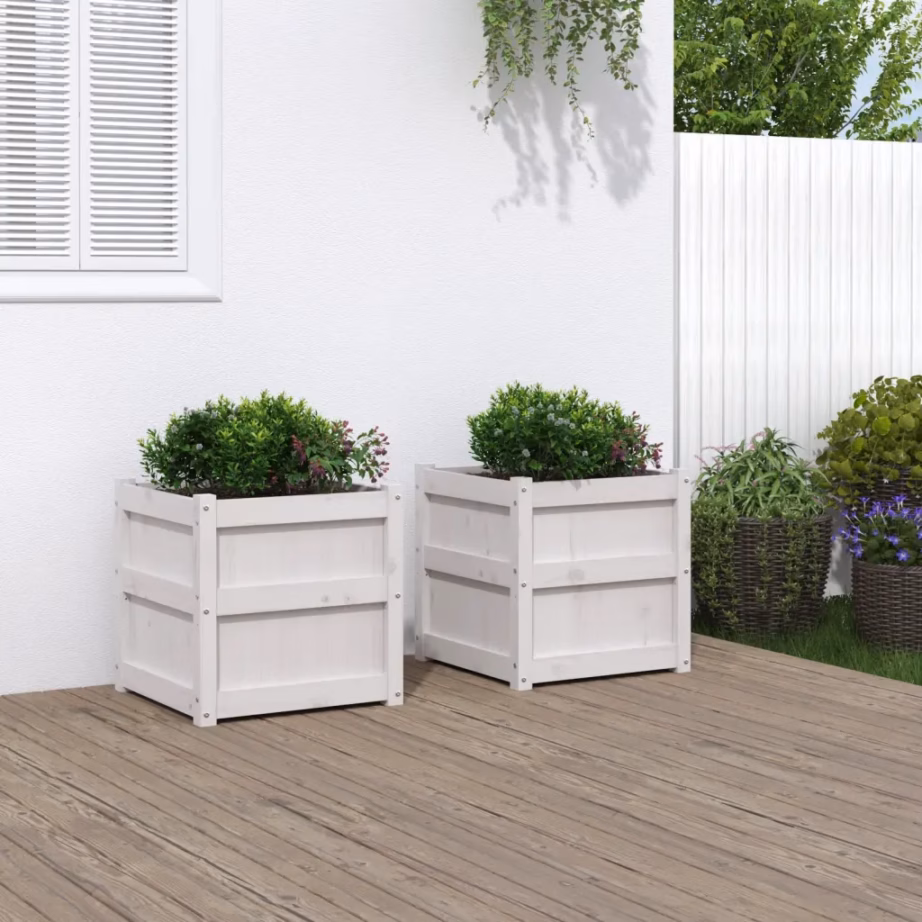 Valged täismännipuidust taimekastid rohelise aia loomiseks