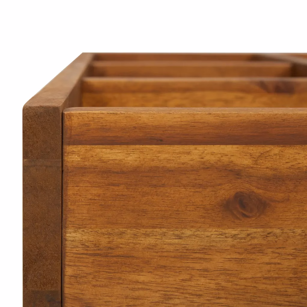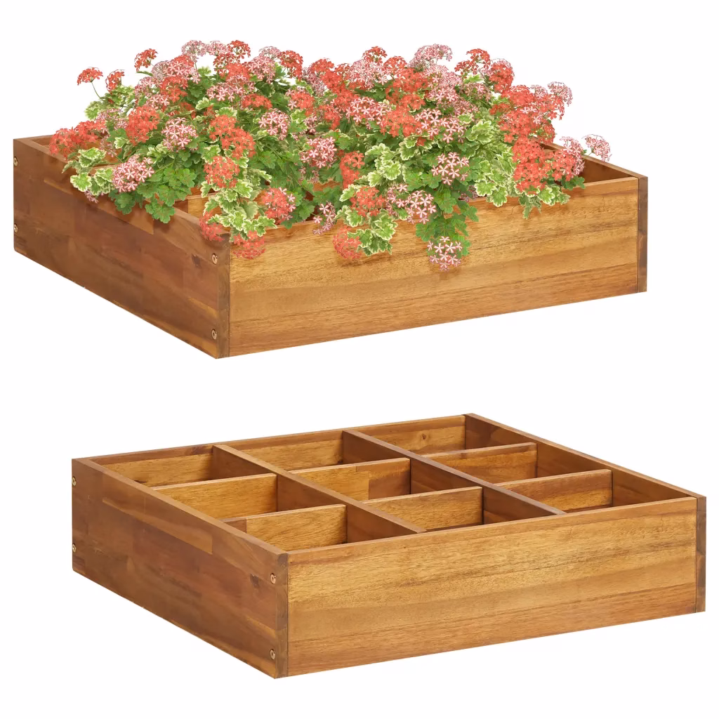 • 1 õliviimistlusega akaatsiapuidust aia taimelava 9 sisemise jaotisega, mõõdud 60 x 60 x 15 cm.