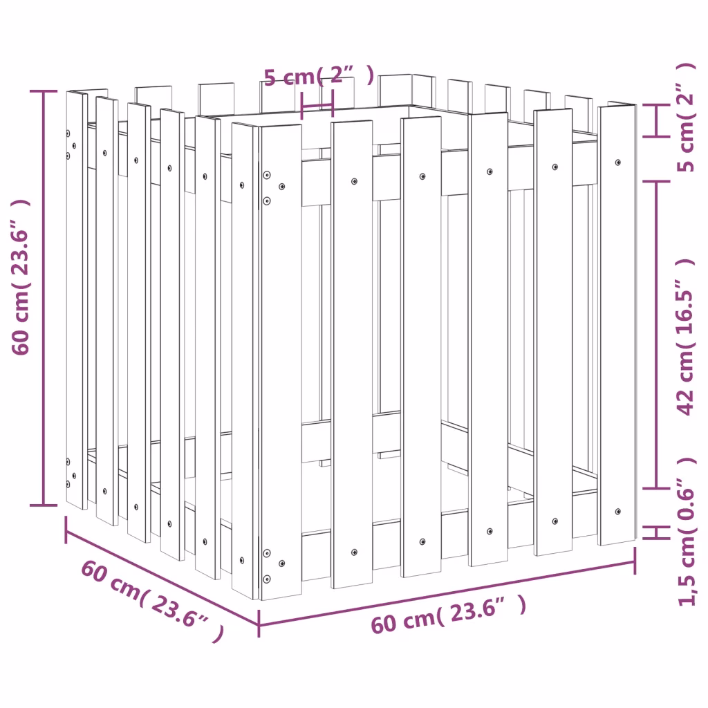 • Mitmekülgne kasutus võimaldab taimekasti kasutada nii otse istutamiseks kui ka dekoratiivse ümbrisena plastist taimepottidele.