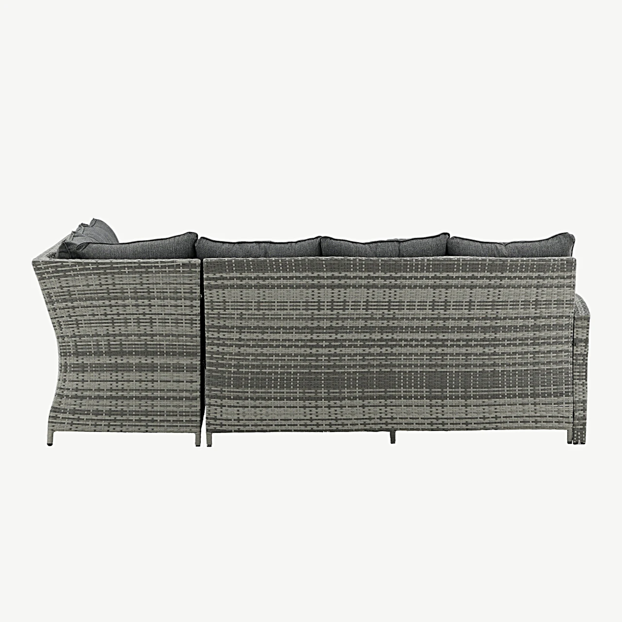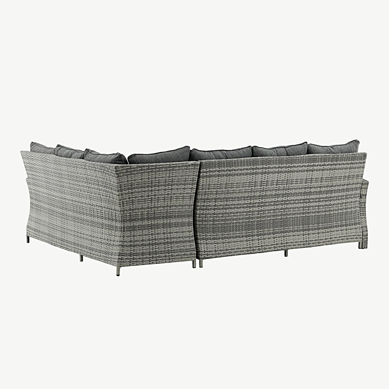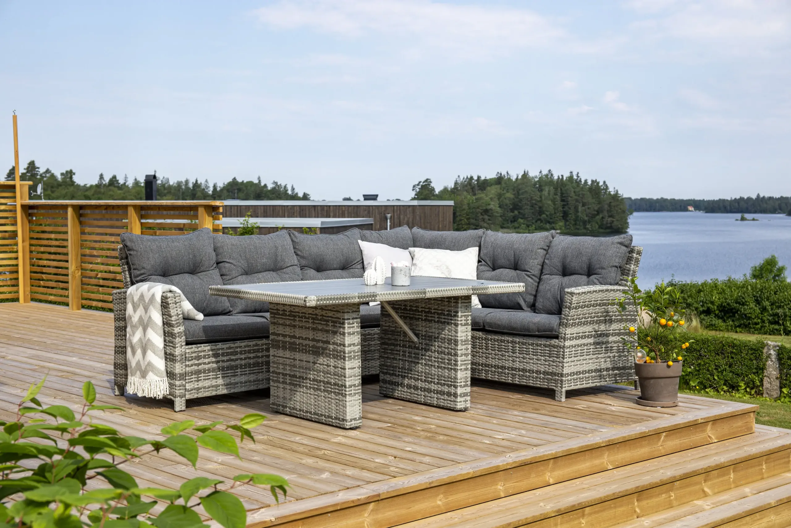 London nurgadiivanikomplekt toob sinu terrassile või aeda põhjamaise stiili ja mugavuse. See kvaliteetne hall nurgadiivan aeda sobib nii avarale terrassile kui rõdule, pakkudes ruumi kuni kuuele inimesele. Komplekti kuulub L-kujuline nurgadiivan ning kõrgem laud, millel on praktiline WPC lauaplaat. Tänu ajatu hallile toonile ja tumehallidele paksudele patjadele sobitub komplekt erinevate õuealade stiiliga ja loob hubase atmosfääri.