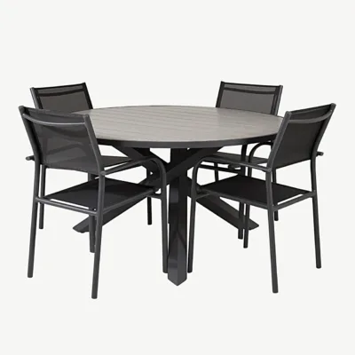 • Materjalide harmooniline kooslus: Puidust lauaplaat lisab looduslikku soojust, teras ja Textilene tagavad modernse, kestva tulemuse ning sobivuse põhjamaise kliimaga.