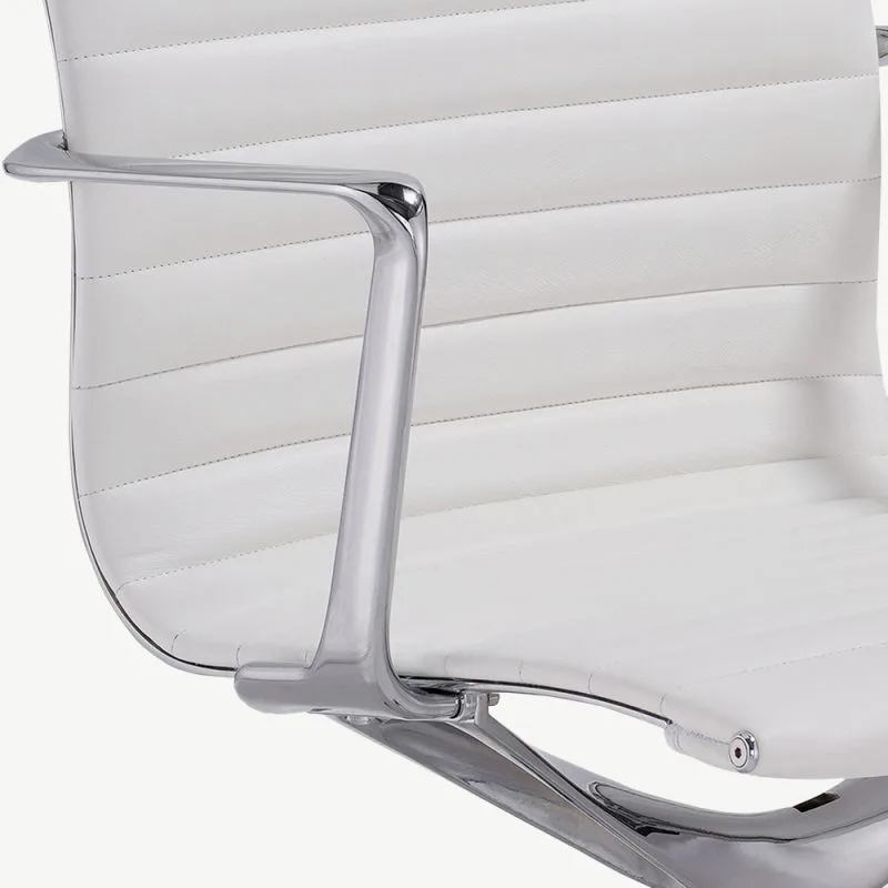 Akira kontoritool on polsterdatud kvaliteetse valge nahaga, mis on vastupidav ja lihtsasti hooldatav. Tagakülg on kaetud stiilse ja vastupidava PU-nahaga. Tooli tugistruktuuri moodustab roostevabast terasest raam ja tugev kroomitud metallist jalg, mis tagab stabiilsuse ja pikaajalise kasutuse.