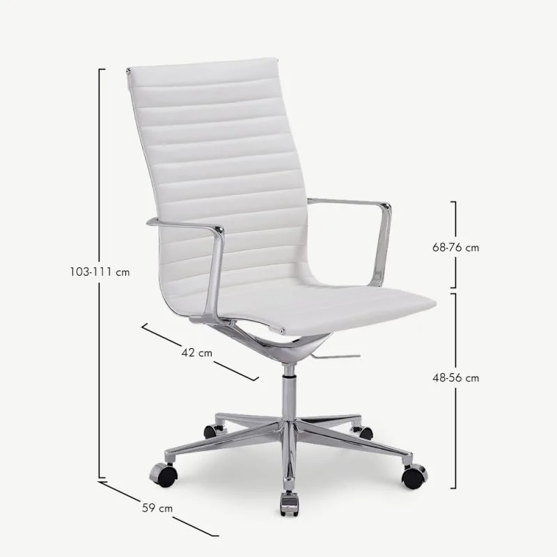Akira kontoritool, valge nahk, kõrge seljatugi