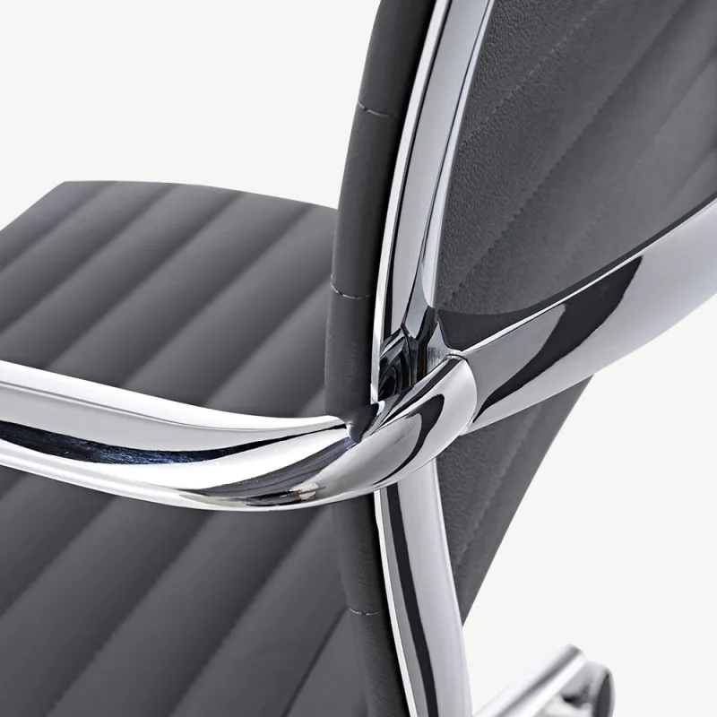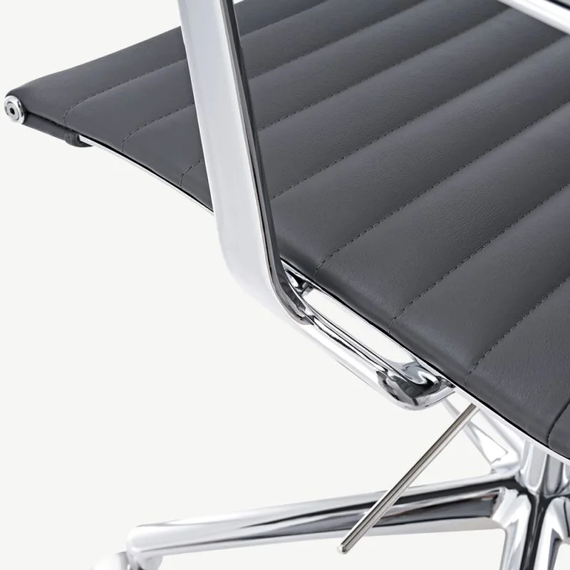Tooli raam ja jalad on valmistatud vastupidavast roostevabast terasest, mis on viimistletud stiilse kroomkattega. Keskmise sajandi modernismist inspireeritud disain sobib suurepäraselt kaasaegsetesse kontorikeskkondadesse, andes ruumile elegantse ning professionaalse ilme.