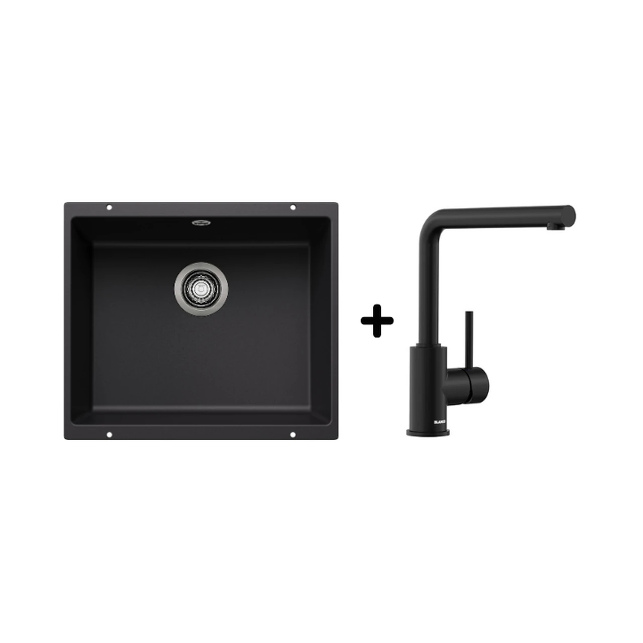 Allamonteeritav Silgranit köögivalamu koos segistiga BLANCO Rotan 500-U + Mila Black Matt, 1-kausiline, must, 60 cm kapile