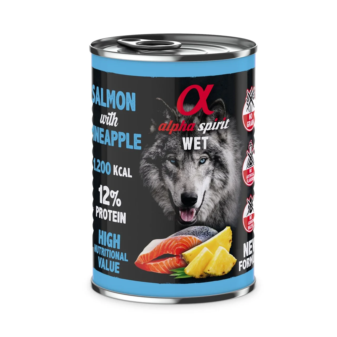 Alpha Spirit lõhe ja ananassiga koerakonserv 400 g – täistoit täiskasvanud koertele
