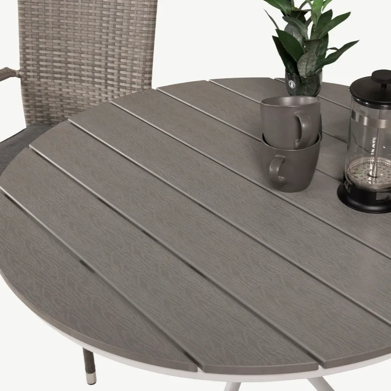 Söögilauakomplekti keskmes on vastupidav Parma laud, mille tugev alumiiniumraam tagab stabiilsuse ja pikaealisuse. Lauaplaat on loodud ilmastikukindlatest materjalidest, mis muudavad selle ideaalseks kasutamiseks välistingimustes. Aia- ja rõdumööblile sobilik materjal on kerge, kuid samas vastupidav, mistõttu on lauda lihtne liigutada ja hooldada.