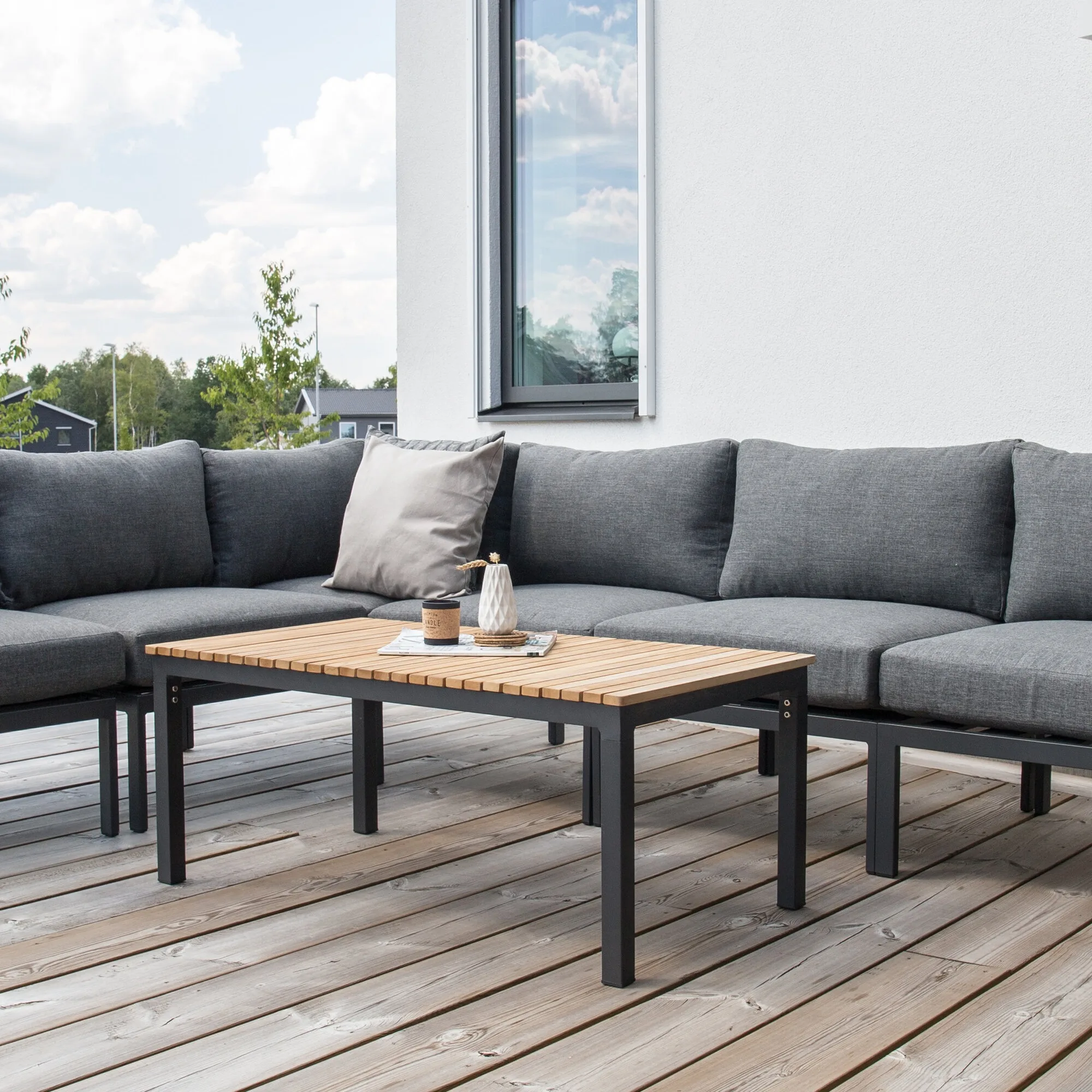 Must metallraam ja naturaalse viimistlusega tiigipuit loovad kauni kontrasti, mis täiendab igas stiilis terrassi või aeda. See diivanilaud ei ole vaid funktsionaalne element, vaid ka kaunis sisustuselement, mis toob sinu õuealale luksusliku ilme.