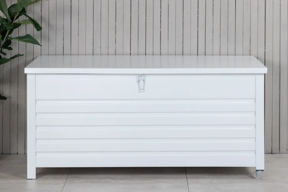 Valge värv annab hoiukastile puhta ja ajatult stiilse ilme, mis sobib suurepäraselt igasse aeda või terrassile. Minimalistlik ja modernne disain muudab selle mitte ainult praktiliseks, vaid ka esteetiliselt nauditavaks aiatarvikuks.