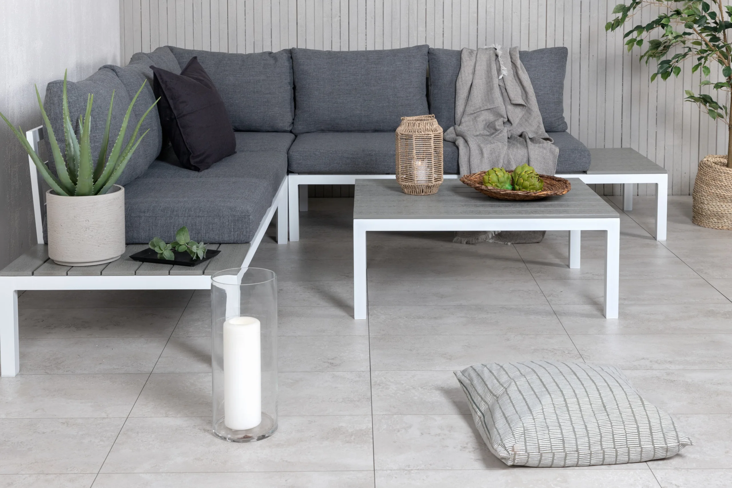 Odense alumiiniumist nurgadiivani komplekt ühendab endas modernse disaini ja praktilisuse, pakkudes suurepärast lahendust terrassile või aianurka. Selle tugev ja ilmastikukindel valge alumiiniumraam tagab pikaajalise vastupidavuse, samas kui hallid polüpuidust detailid lisavad elegantsi ja soojust.