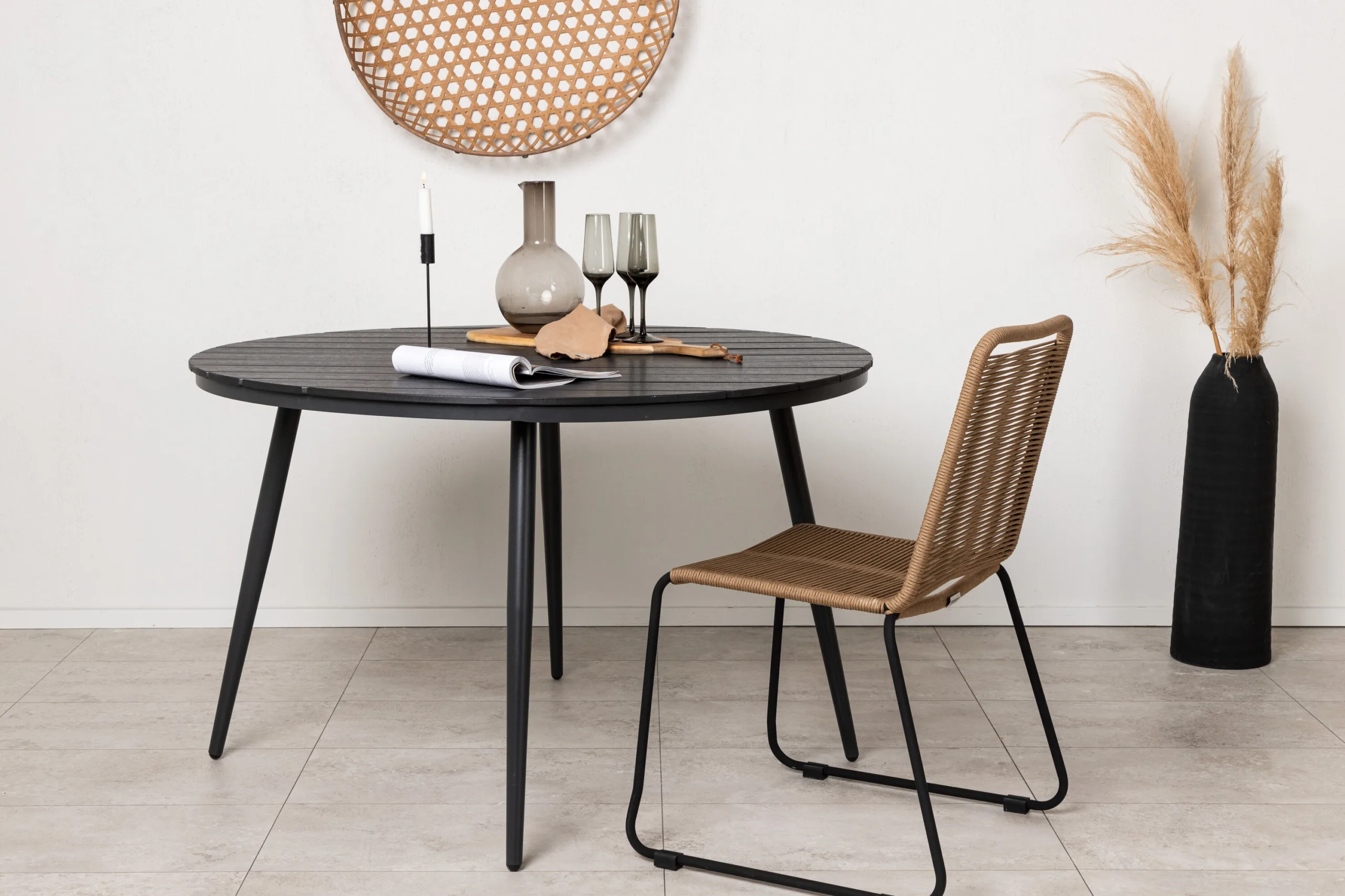 Too oma aeda või rõdule ajatult elegantne ja praktiline lahendus alumiiniumist aia söögilauaga. See ümmargune söögilaud on loodud pakkuma mugavat ja sotsiaalset atmosfääri, kus vestlused ja naer saavad vabalt voolata. Klassikaline must disain sobib suurepäraselt erinevate aiatoolide ja väliruumide sisustusega, muutes selle ideaalseks valikuks nii pereõhtusöökideks kui ka suvisteks koosviibimisteks sõpradega.