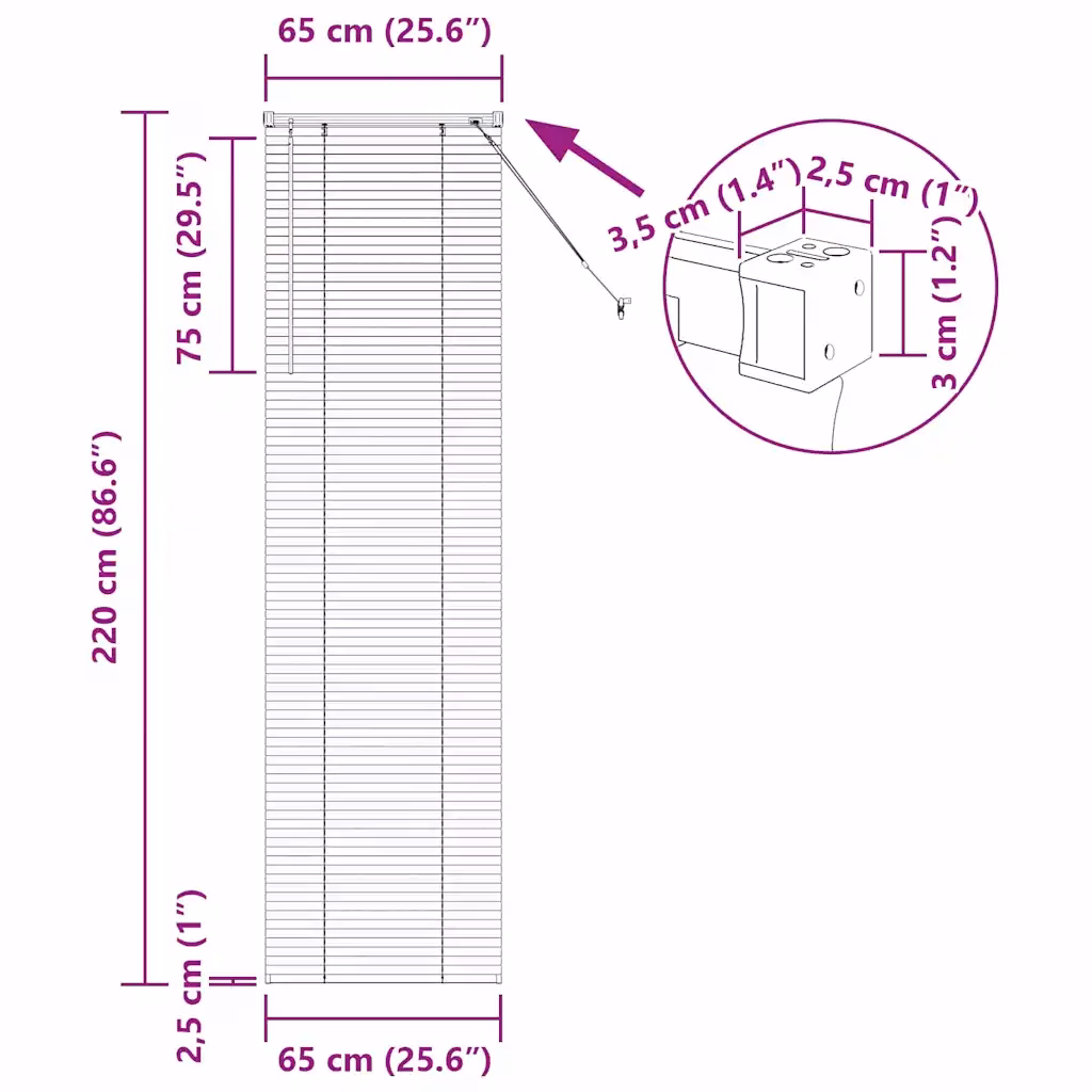 - Sobivad mõõtmed – üldmõõtmed 220 x 65 cm (pikkus x laius) võimaldavad katta kõrge, kitsama akna ühe ruloo lahendusena.