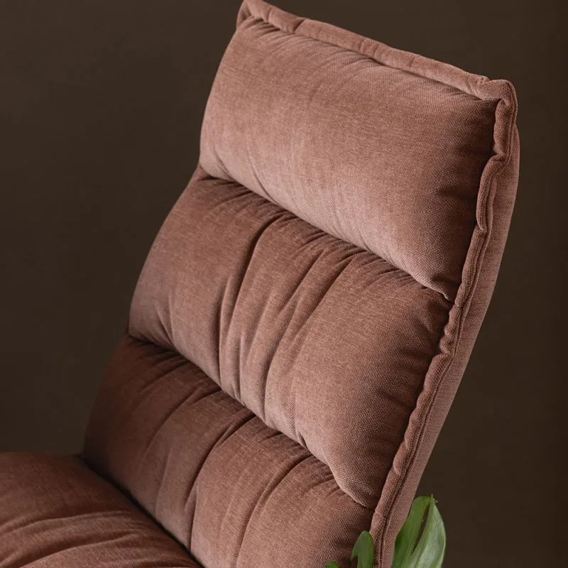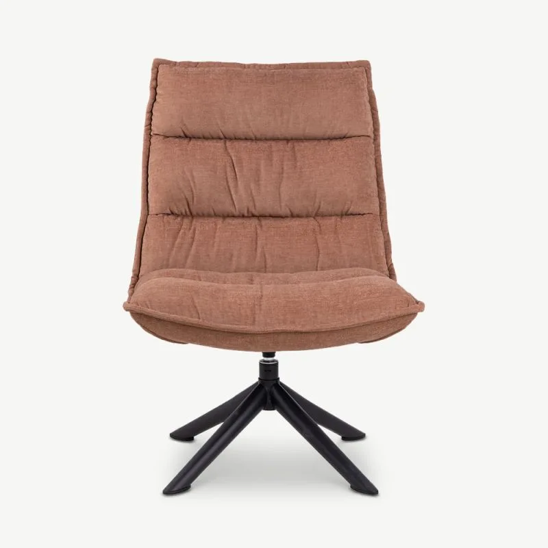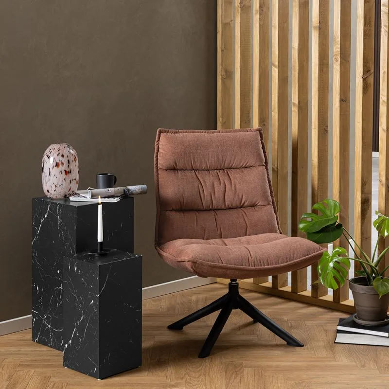 Tugitool on kaetud kvaliteetse pruuni kangaga, millel on pehme chenille efekt. See luksuslik materjal lisab tootele soojust ja loob visuaalselt pilkupüüdva tekstuuri. Täiendavalt annab horisontaalne õmblus toolile huvitava struktuuri ning rõhutab selle vormi ja mugavust.