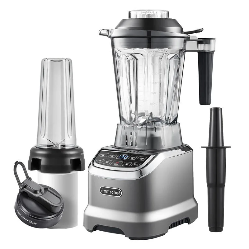 AMZCHEF ZM5003-GA kannmikser pakub muljetavaldavat võimsust kuni 1800 vatti ja mahutavust 1,85 liitrit, terad pöörlevad kuni 26 000 p/min. See muudab lihtsaks erinevate toitude ja jookide valmistamise – alates smuutidest ja kokteilidest kuni kreemsuppideni. Samuti saate edukalt jahvatada teravilja või liha. Täiendav 600 ml pudel võimaldab nautida maitsvaid jooke ka kodust väljas.