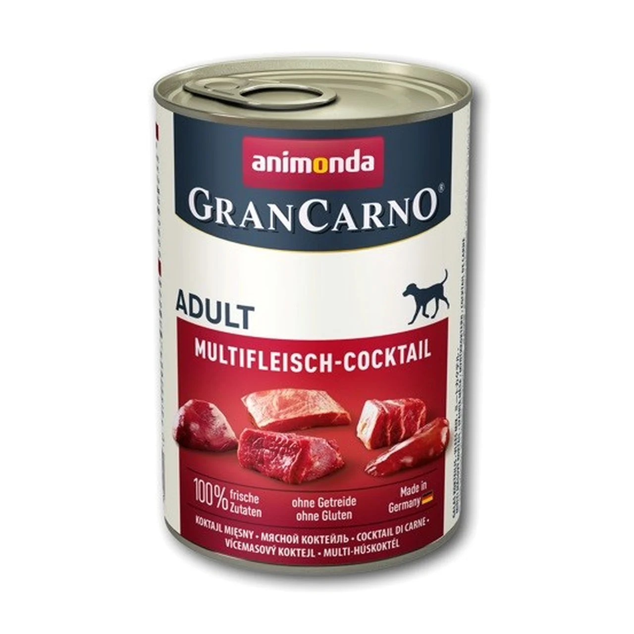 Animonda GranCarno Adult Meat cocktail märgtoit pakub täiskasvanud koerale kõrgekvaliteedilist ja looduslähedast toidukogemust. See on valmistatud 100% värsketest lihalistest koostisosadest ning sobib igas suuruses ja igat tõugu täiskasvanud koerale. Märgtoit on igapäevaseks toitmiseks, pakkudes vajalikku energiat ja toitainete tasakaalu ning toetades koera üldist tervist. Tänu teravilja-, gluteeni-, soja- ja kunstlike lisaainete puudumisele sobib see hästi tundliku seedimisega või allergiatega koertele.