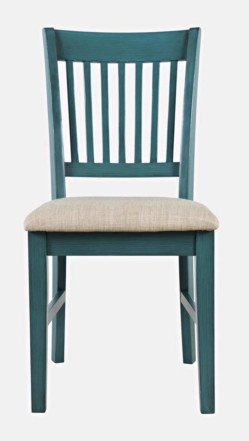 Avola AV175-370 tool söögituppa. See rustikaalses stiilis polsterdatud tool toob teie söögituppa iseloomuliku shabby-chic hõngu. Tumedas sinises toonis tooli lihtsat vormi täiendab seljatoe vertikaalsete liistude disain ja kreemjas polsterdatud iste, mis lisab elegantsi ja mugavust.