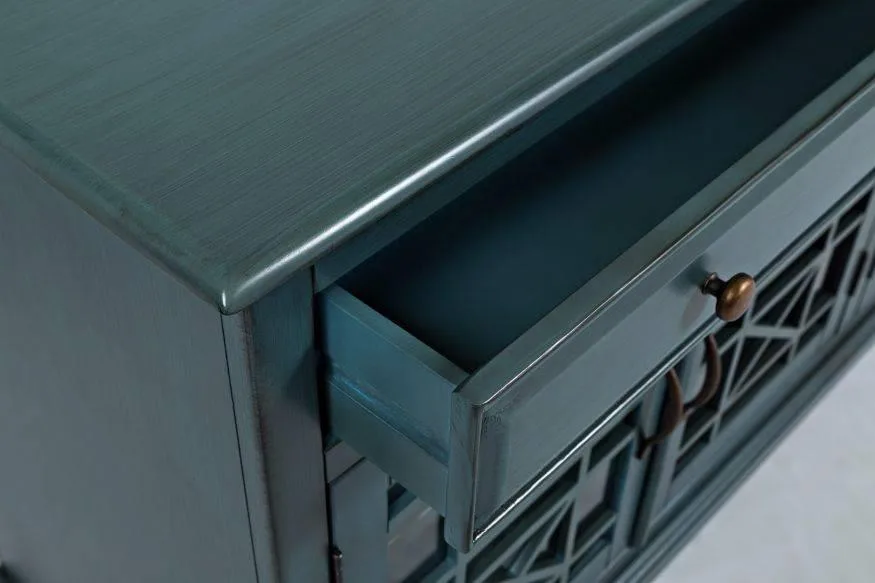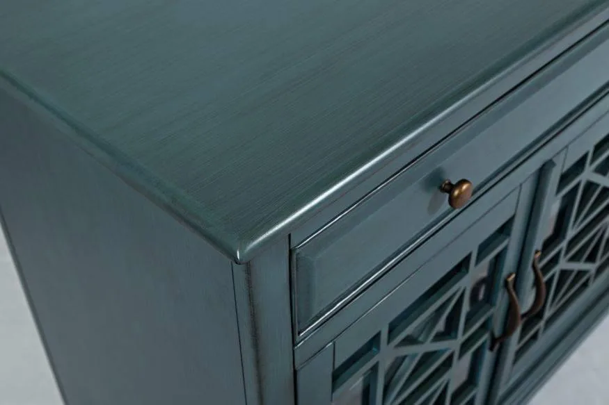 Avola AV175-9 puhvetkapp elutuppa. See elegantne mööbliese on osa Avola kollektsioonist, mis ühendab klassikalise disaini kaasaegsete materjalidega. Puhvetkapp on valmistatud akaatsiapuust ja MDF-ist, mis tagab vastupidavuse ja ajatu ilu. Antiiksinine värv koos pealmise ja trimmivärviga lisab suursugusust igasse elutuppa.