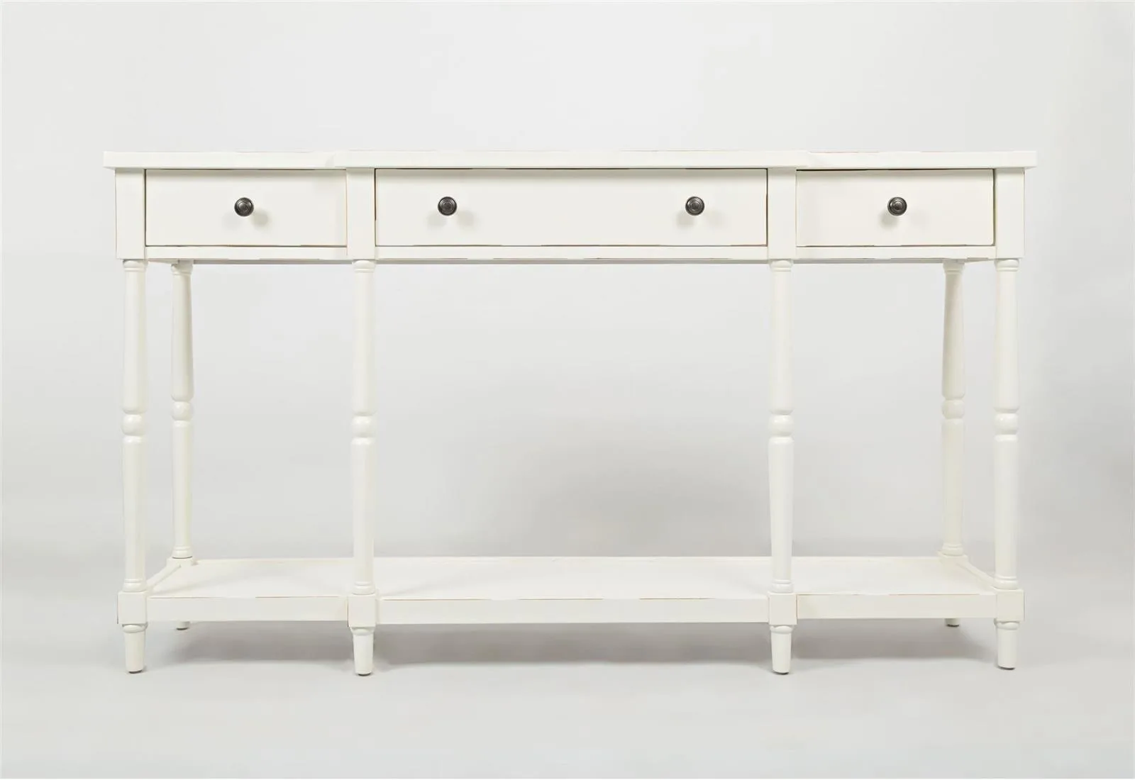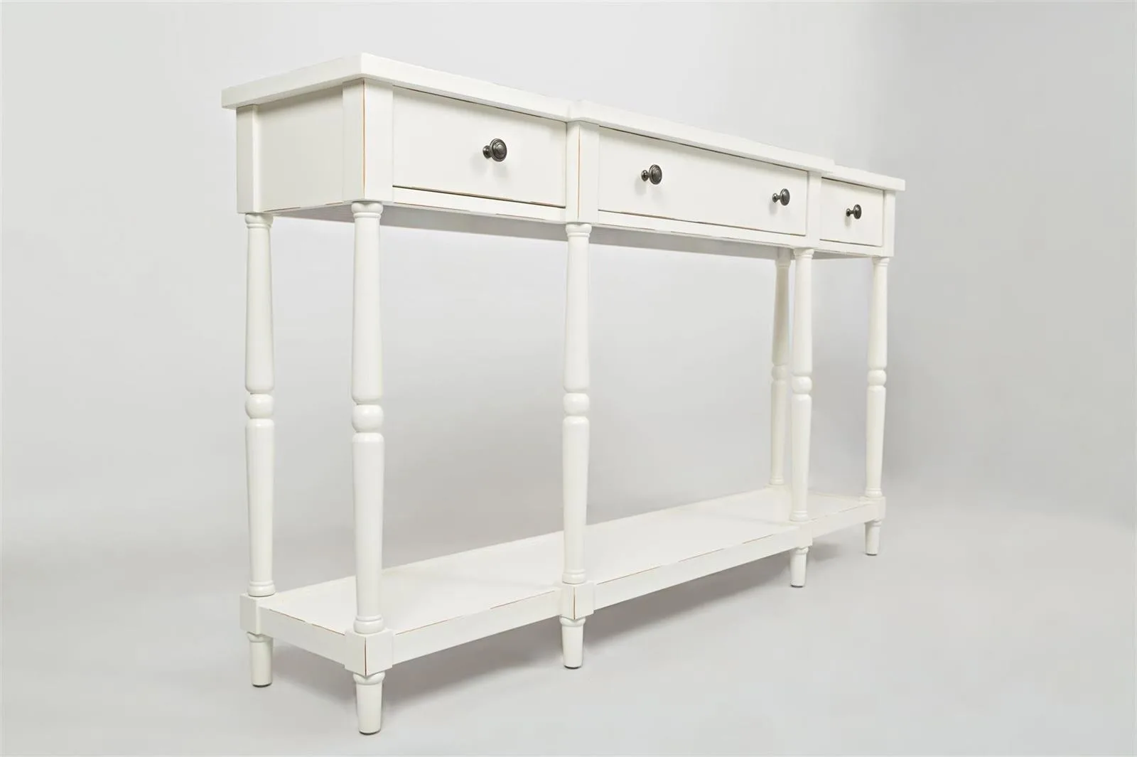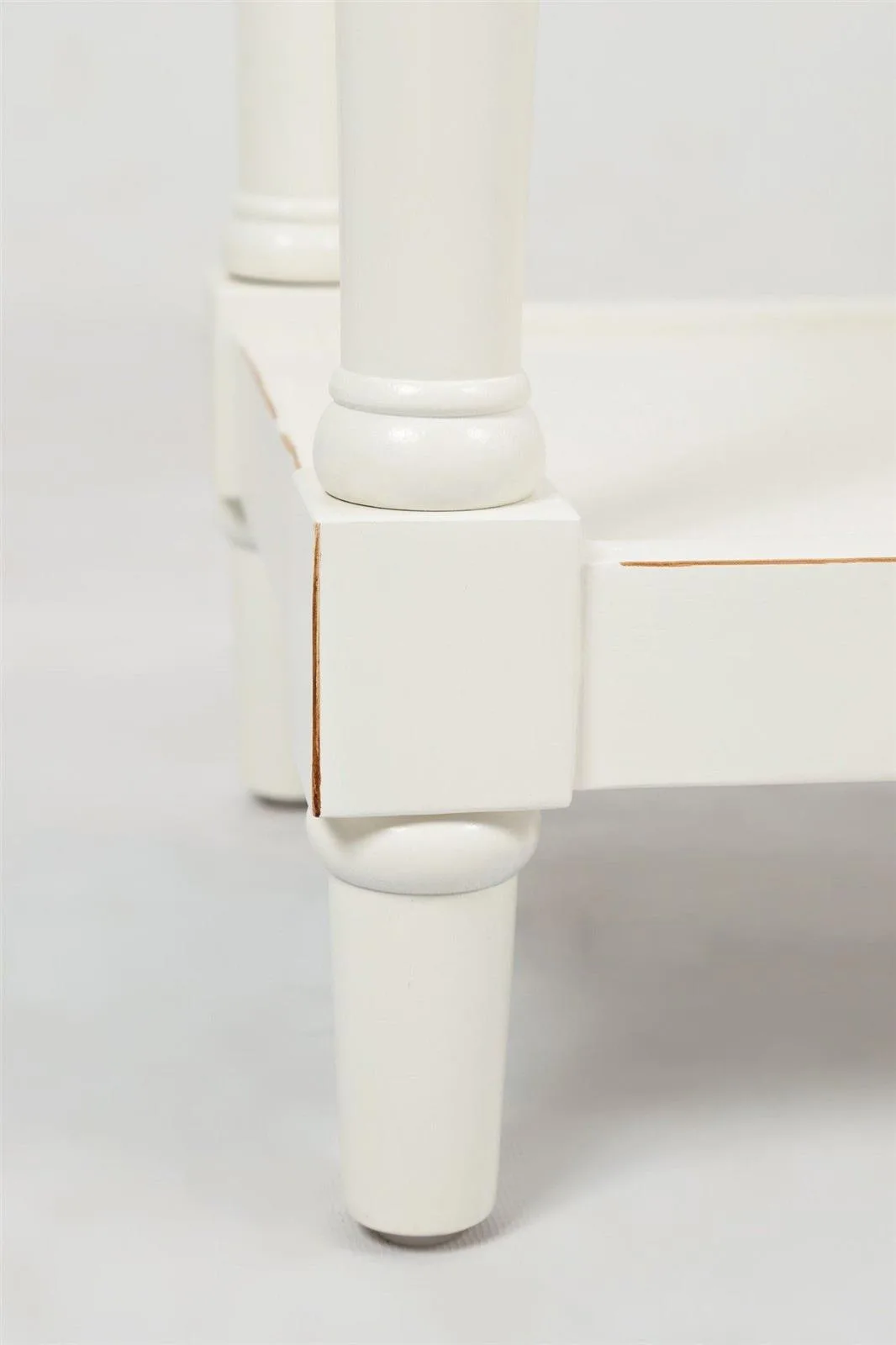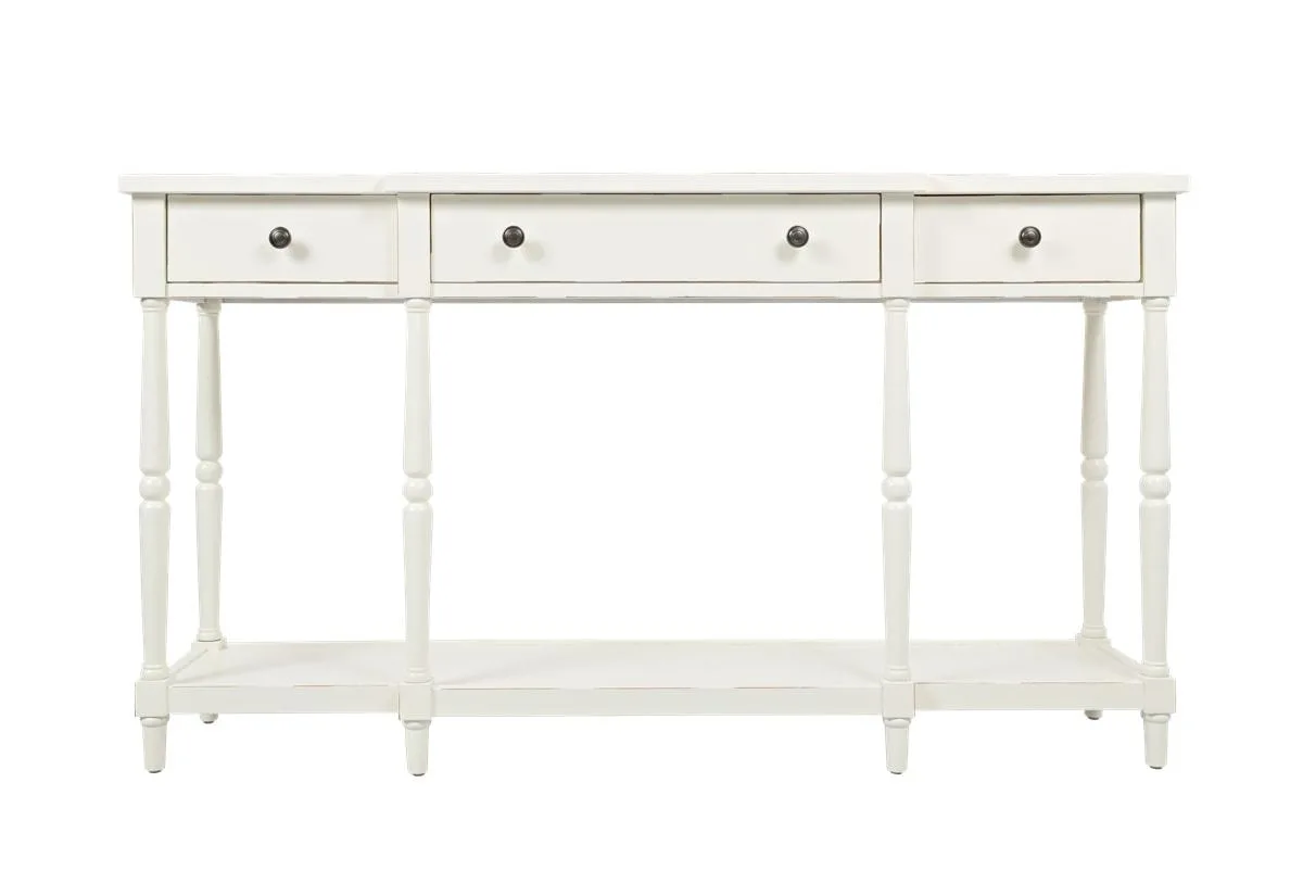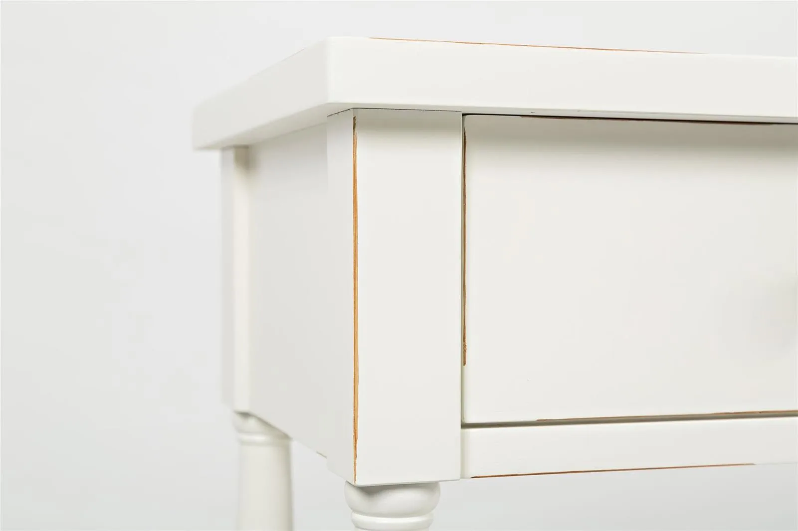 Avola AV1630-60 konsoollaud esikusse. Selle elegantse Hamptoni stiilis konsoollaua keeratud jalad ja antiikvalge viimistlus loovad sissepääsule kutsuva atmosfääri. Laud on varustatud funktsionaalsete sahtlitega, millel on lihtsad metallist käepidemed, ning ühe riiuliga, pakkudes praktilist hoiuruumi. Iseloomulik vanutatud välimus, sealhulgas kooreüraskite jäljendid, lisab ainulaadset võlu.