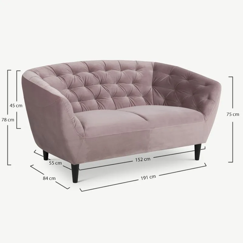 Aria 2-kohaline diivan, tolmuroosa samet – elegantne ajatu disain