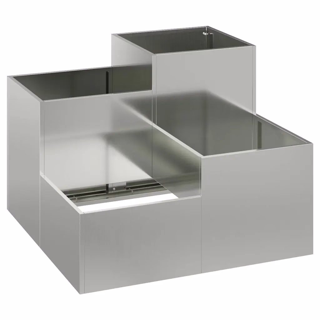 See hõbedane tsingitud terasest aiastutuskast loob selgete joontega istutusala, mis sobib eriti hästi kaasaegse aia ja terrassi kujundusse. Astmeline ristkülikukujuline kuju aitab taimi kenasti esile tõsta ning pakub praktilist ja vastupidavat lahendust lillede, ürtide või madalate dekoratiivtaimede kasvatamiseks.