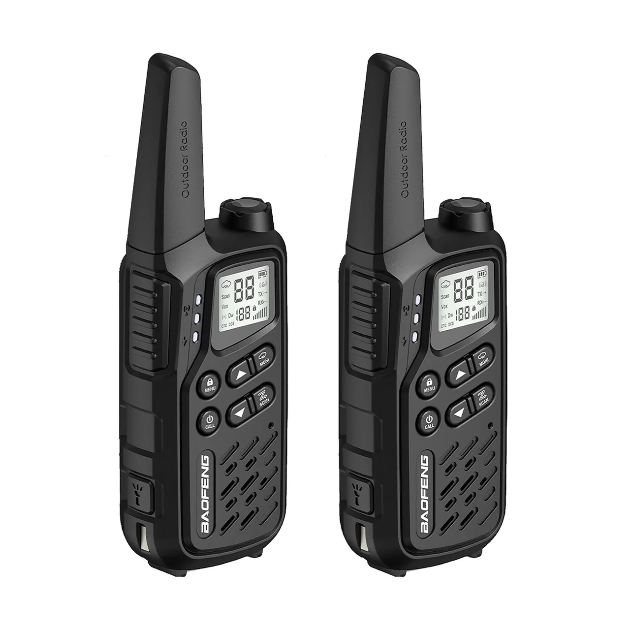 Must laste raadiosaatja komplekt Baofeng BF-T25E sisaldab kahte PMR raadiosaatjat LCD-ekraani, LED-taskulambi ja Li-Ion akuga ning pakub kuni 10 km ulatuses turvalist ja mugavat suhtlemist.