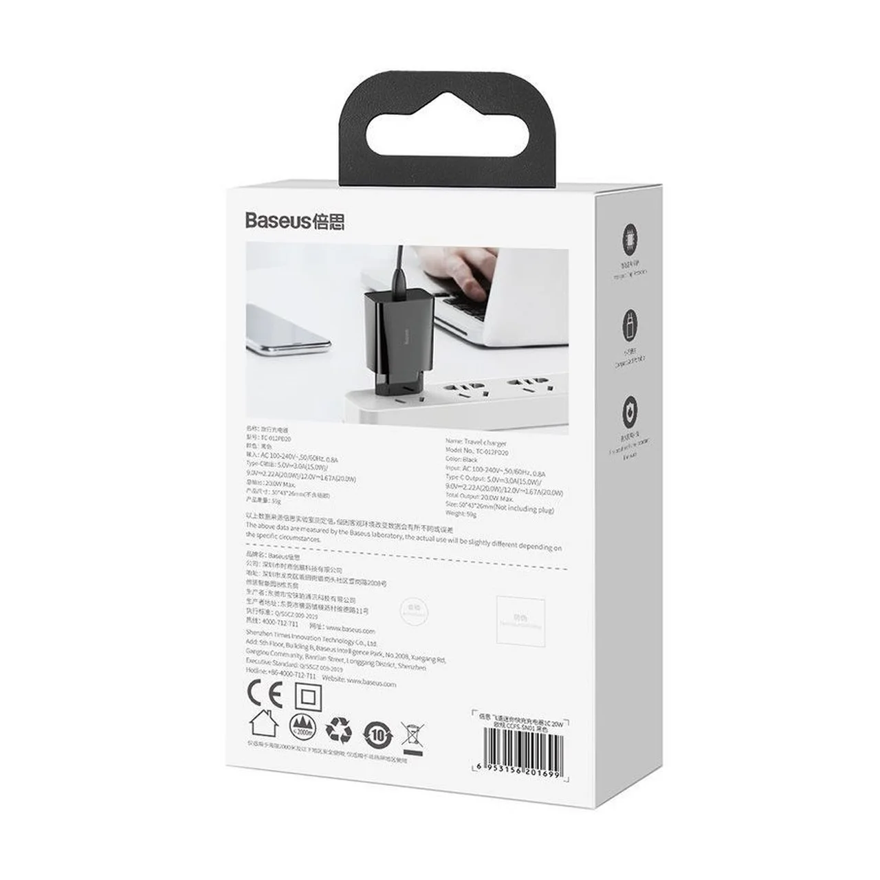 Baseus CCFS-SN01 must USB-C kiirlaadija 20W nutitelefonidele