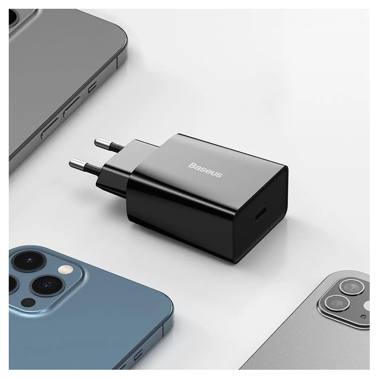 Baseus CCFS-SN01 must USB-C kiirlaadija pakub kuni 20 W väljundvõimsust ning sobib nutitelefonide kiireks ja ohutuks laadimiseks.
