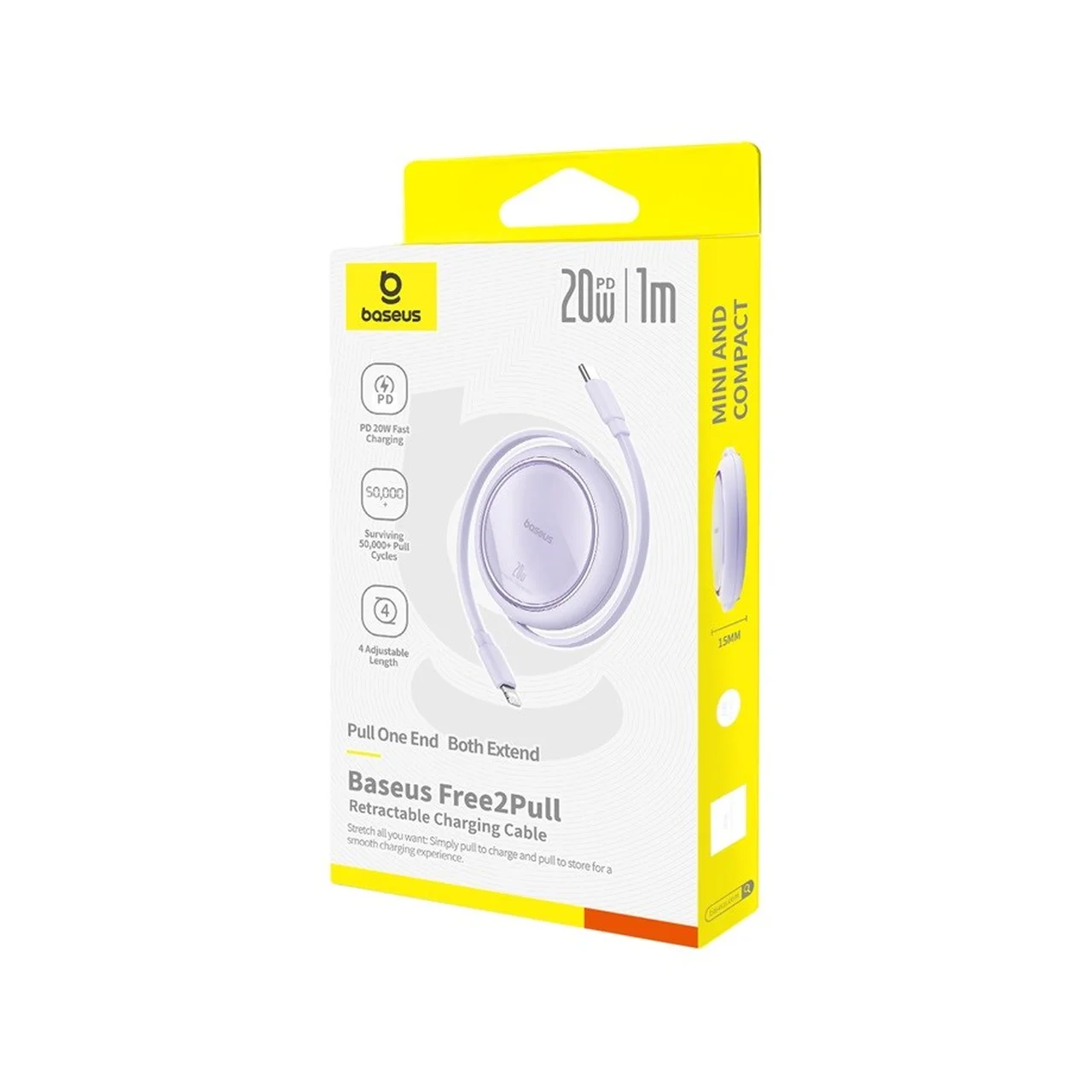 Baseus Free2Pull P10364501511-00 1 m 20 W USB-C to Lightning tõmmatav kaabel, lilla TPE/PC