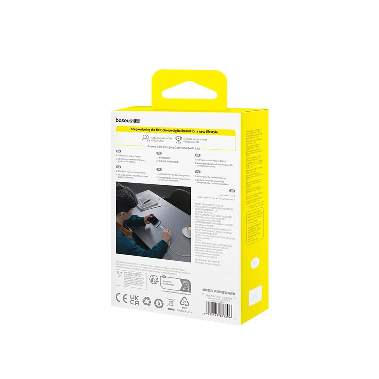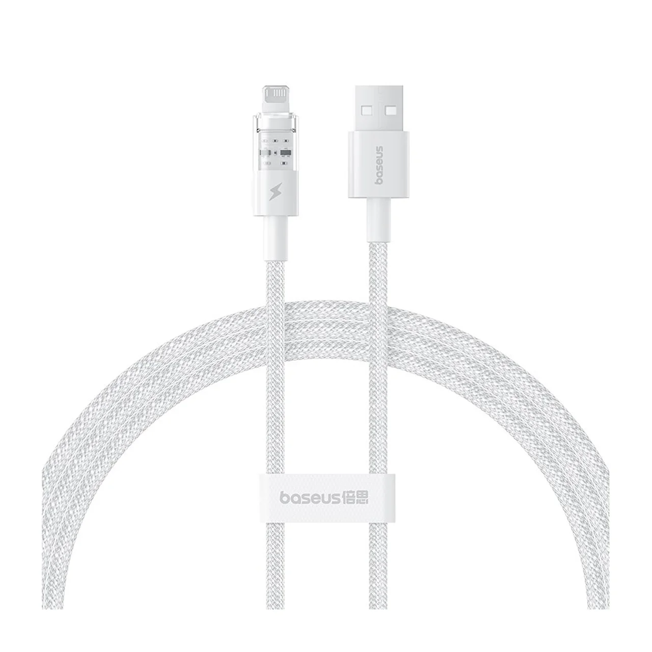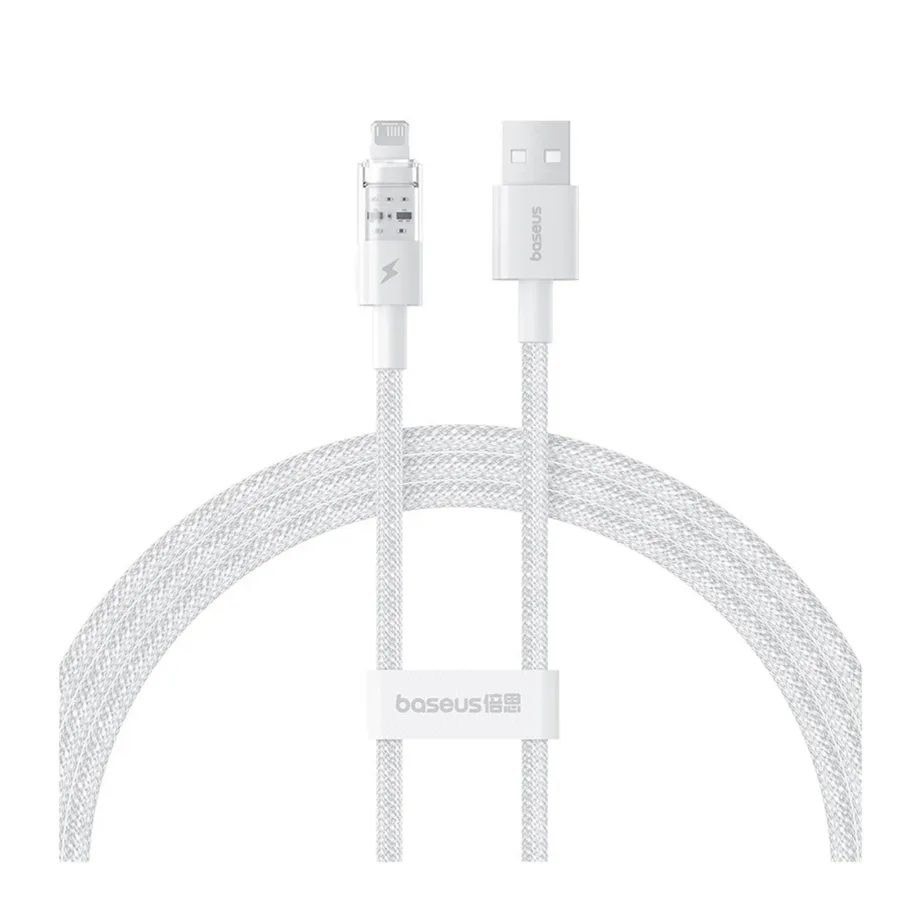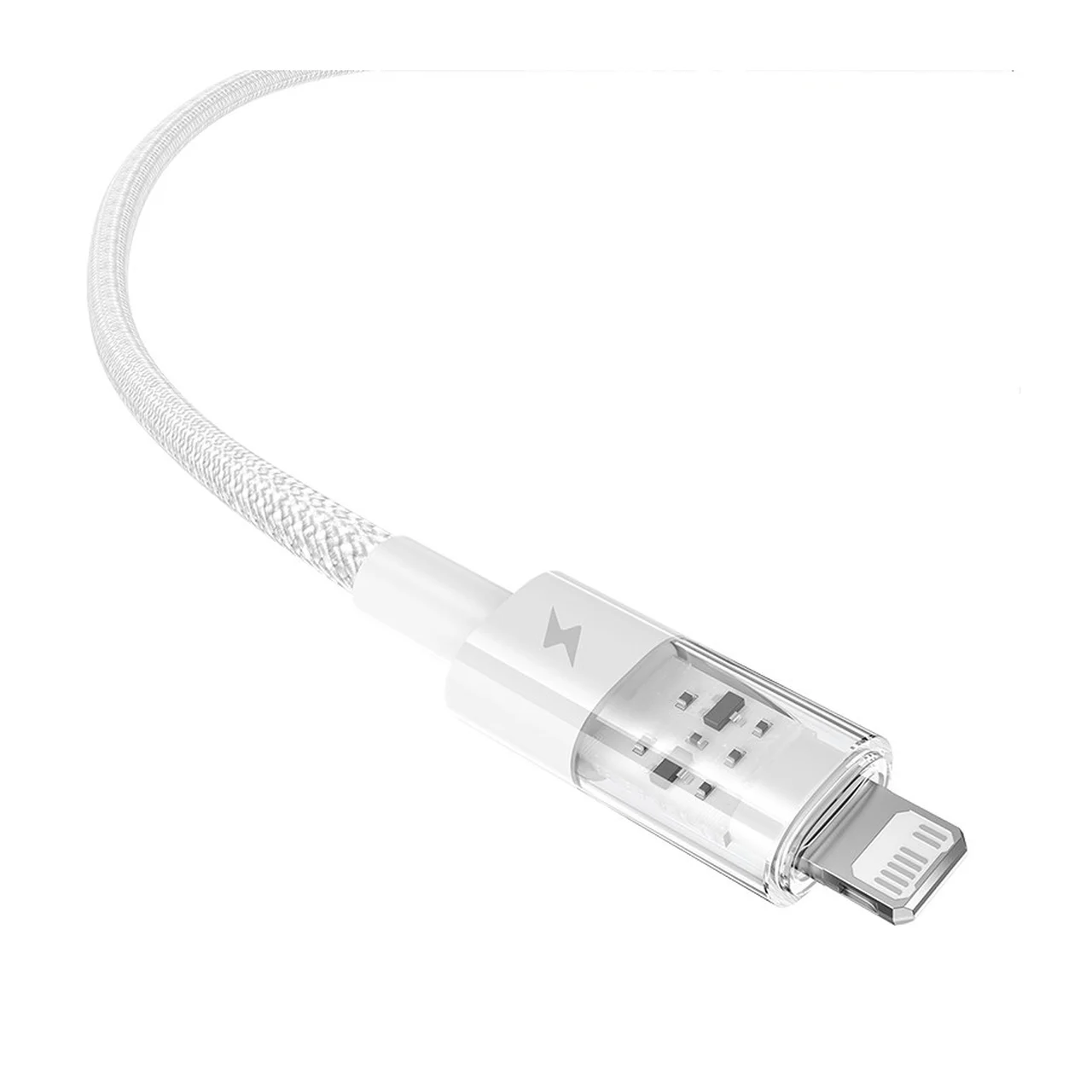 Baseus Gem 1 m valge USB-A–Lightning kaabel toetab 2,4A kiirlaadimist ning on vastupidava nailonkattega, sobides Apple’i seadmete laadimiseks.