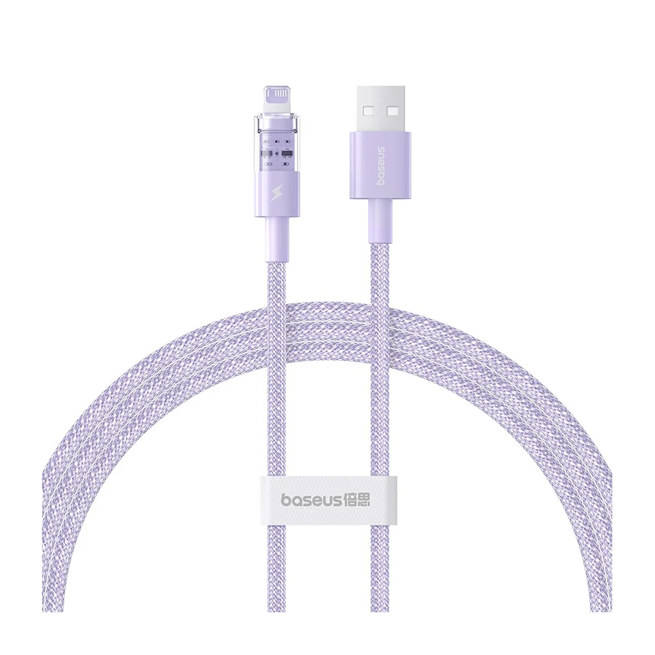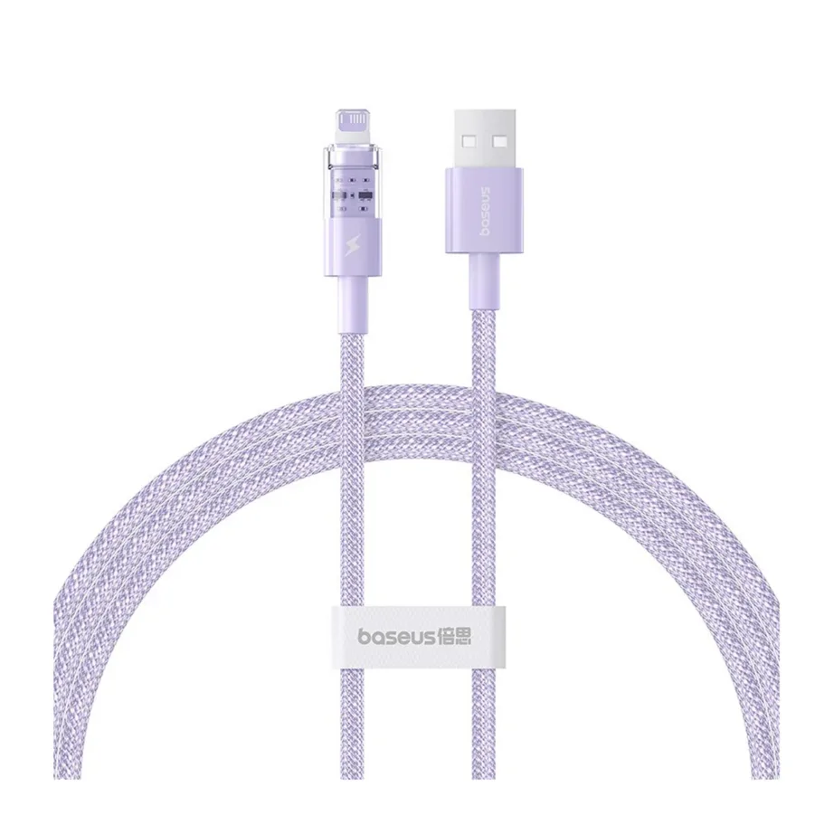 Baseus Gem 1 m lilla nailonkattega USB-A – Lightning kaabel toetab 2,4 A kiirlaadimist ning sobib Apple’i seadmete kiireks ja usaldusväärseks laadimiseks.
