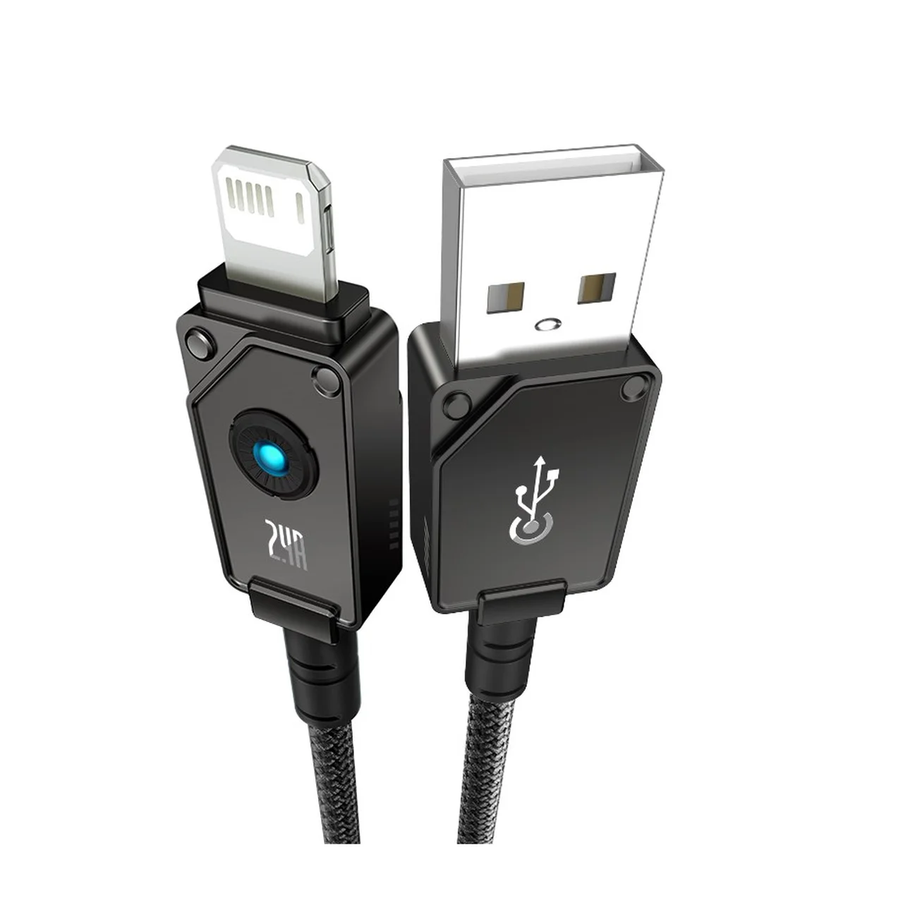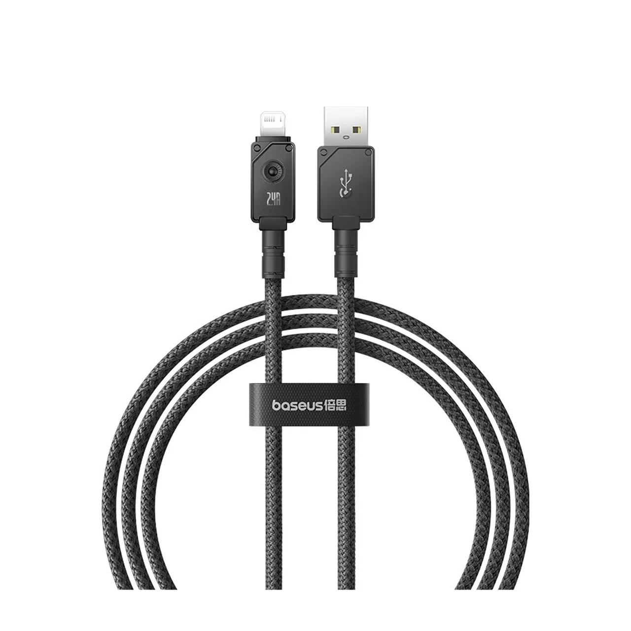 Baseus USB-A – Lightning kaabel on 1 meetri pikkune, vastupidava aramiidkiust punutisega ning toetab kuni 2,4 A voolu ja 480 Mbit/s andmeedastuskiirust.