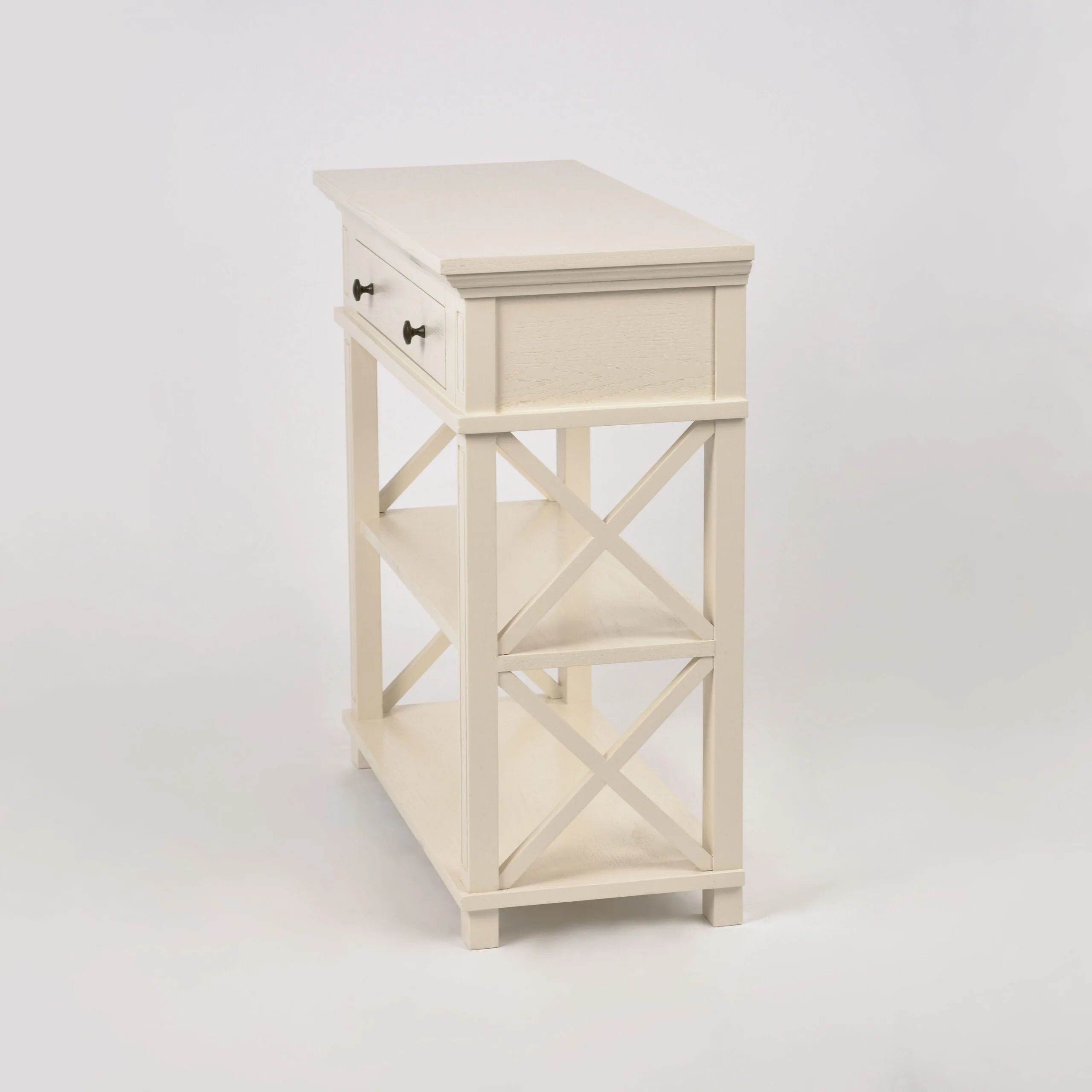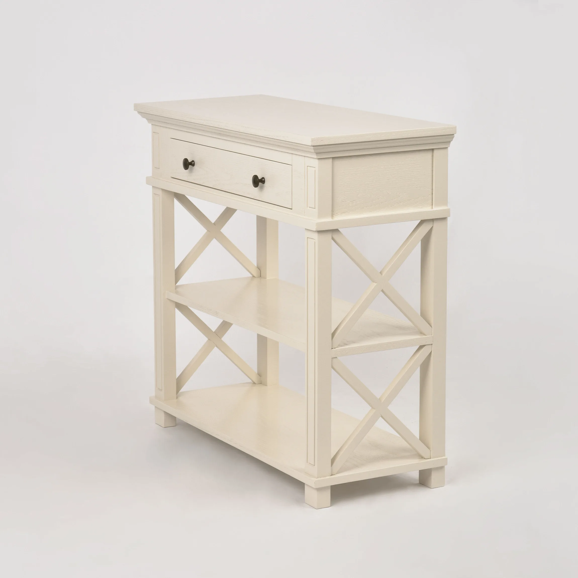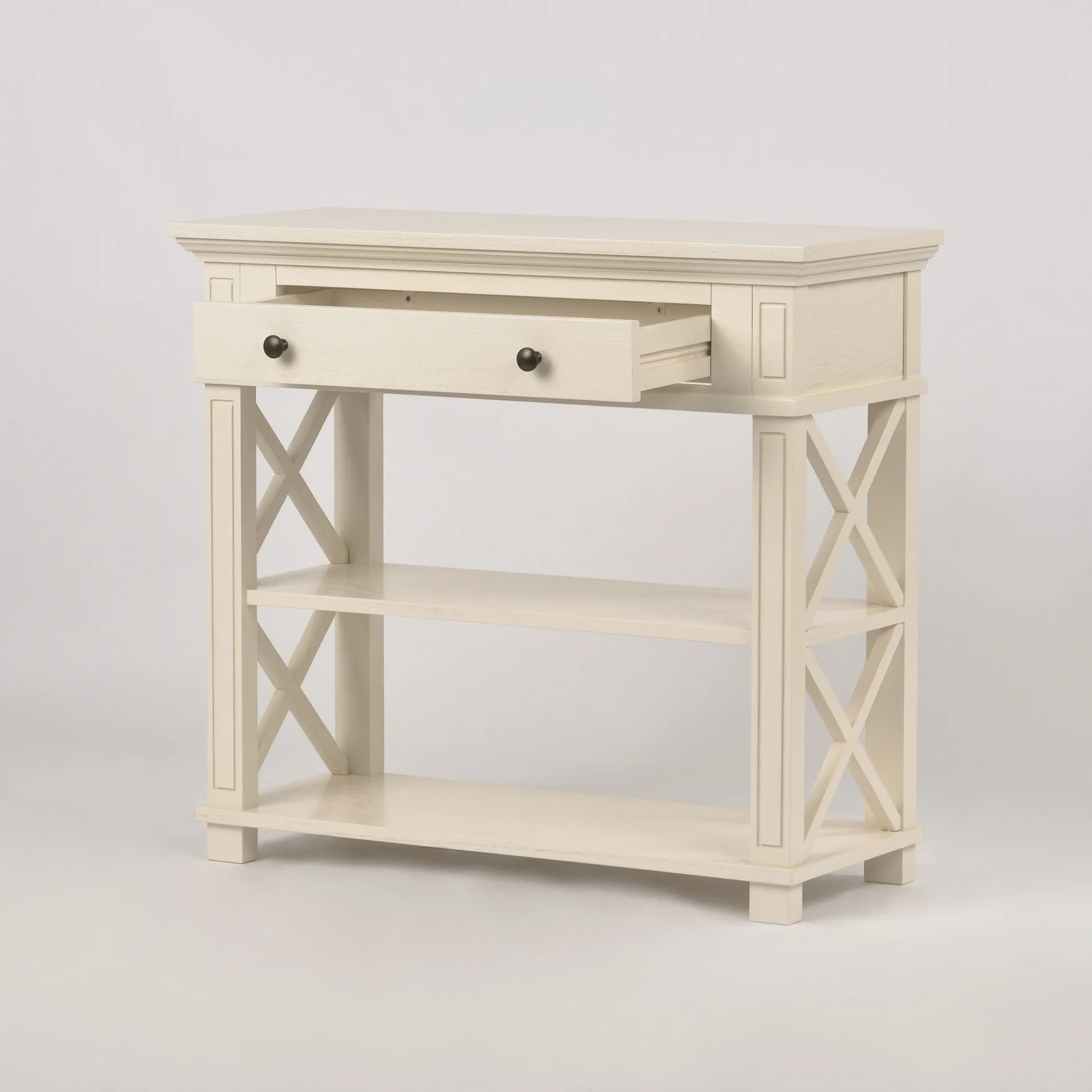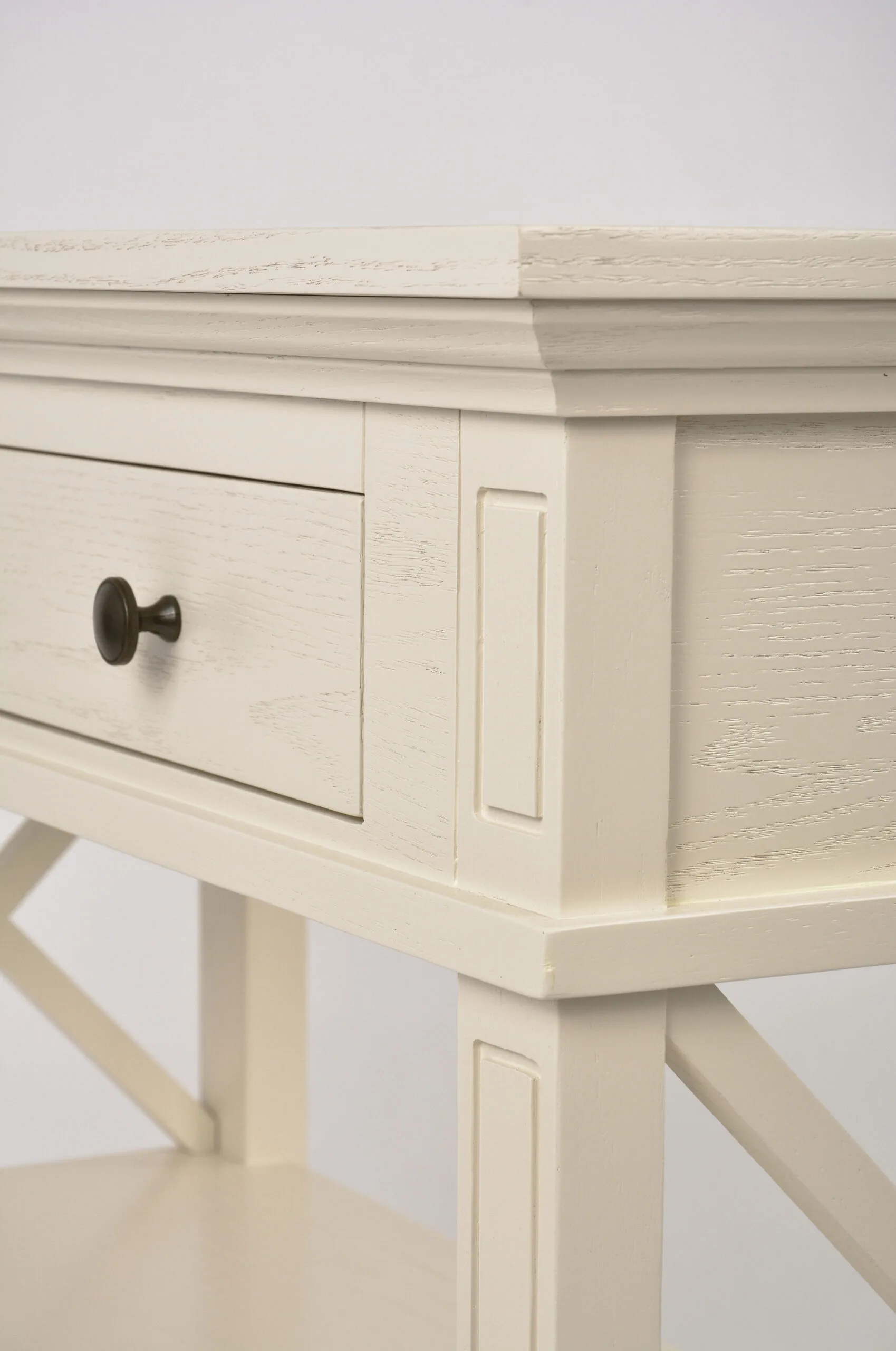 Hamilton HT028 konsoollaud esikusse. See elegantne konsoollaud Zona-Light kollektsioonist toob teie esikusse Hamptoni stiili võlu. Kreemjas tammepuidust valmistatud laual on avatud X-kujulised küljed, millel on freesitud jalad ja servad, ning harjatud pind kulumisjälgedega, mis annavad sellele ainulaadse iseloomu.