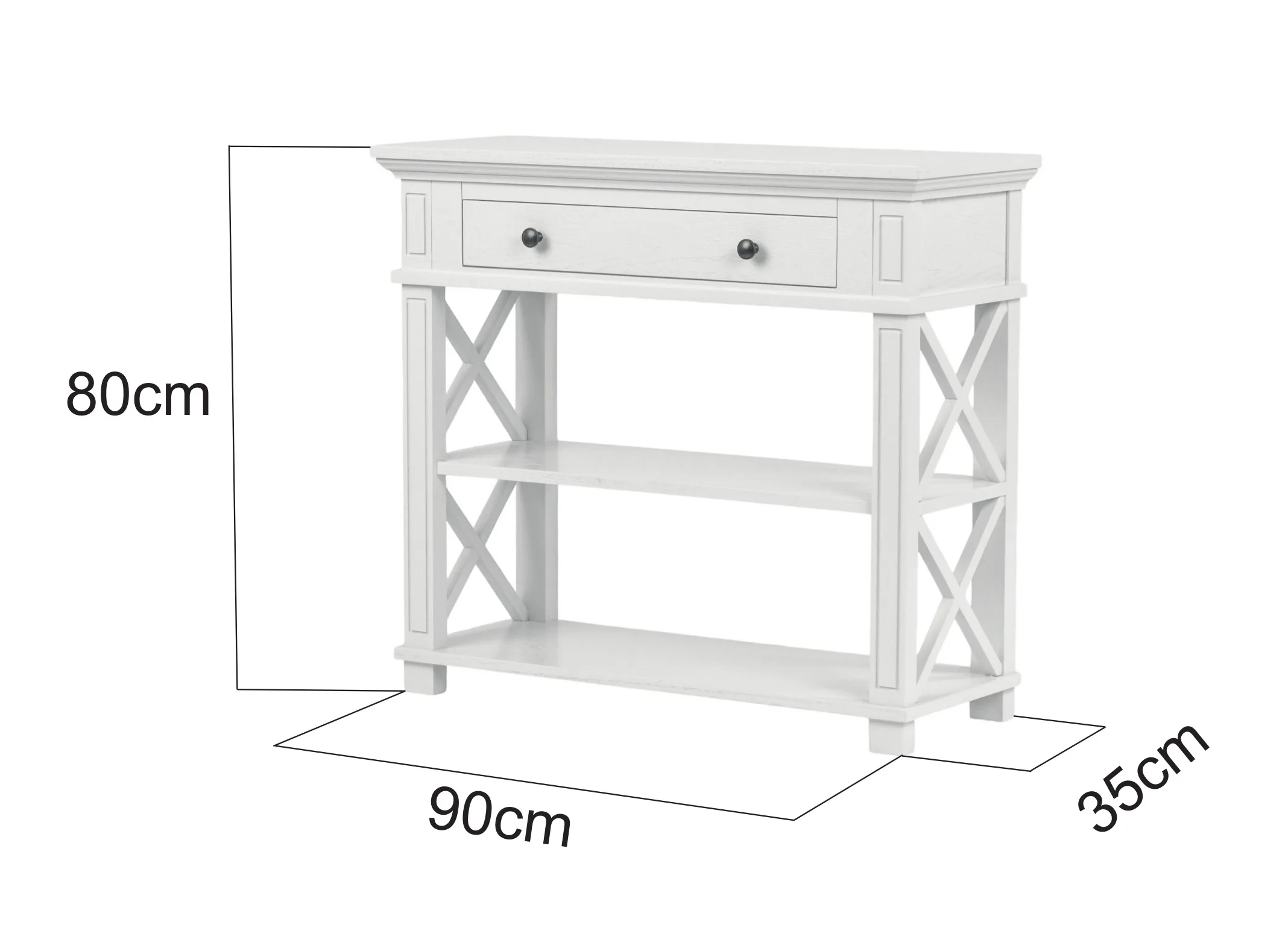 Mõõtmed: Laius 90 cm, sügavus 35 cm, kõrgus 80 cm