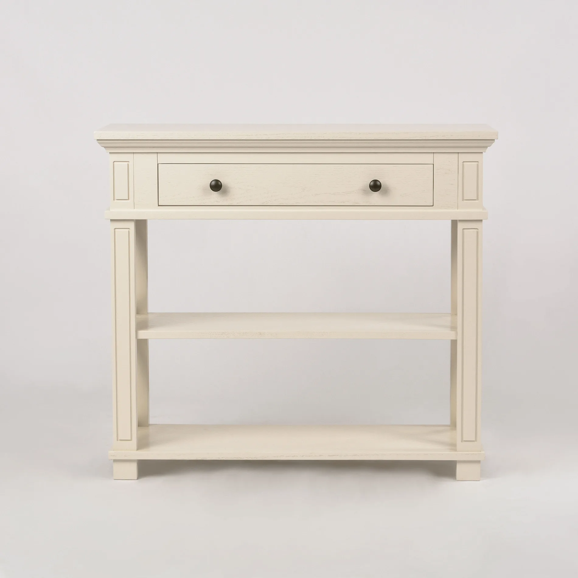 Hamilton HT028 konsoollaud on suurepärane valik, et lisada teie esikusse stiili ja praktilisust. Kaks riiulit pakuvad piisavalt ruumi, et hoida korras igapäevaseid esemeid. Metallist käepidemed lisavad lauale kaasaegset puudutust. Nähtav puidustruktuur ja shabby chic stiilis värvikulumine annavad sellele konsoollauale erilise võlu.