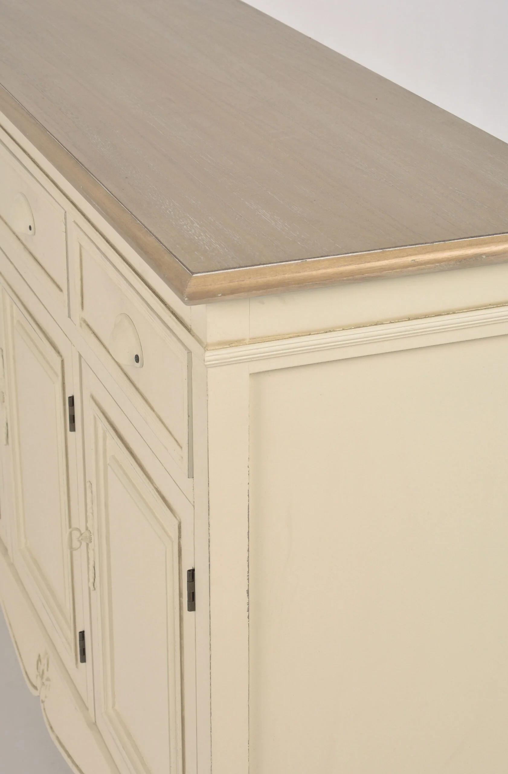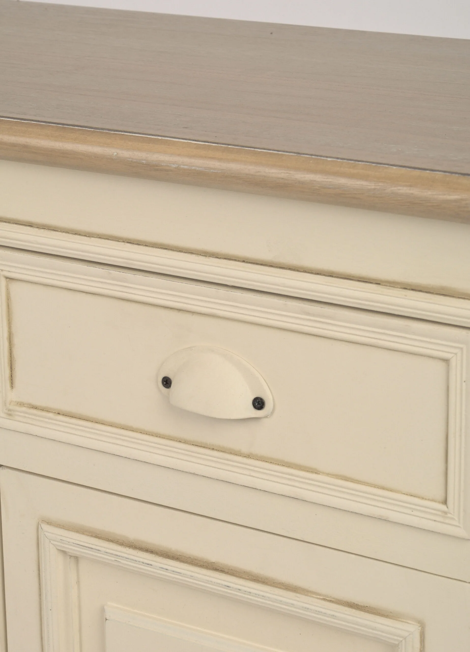 Rimini RI08 kapp elutuppa. See Provencal stiilis vitriinkapp on elegantne lisand teie elutuppa, ühendades endas praktilisuse ja klassikalise ilu. Kapi kreemjas toon koos heleda pruuni pealispinnaga loob rahuliku ja kutsuva atmosfääri. Kapi metallist karbikujulised käepidemed ja kumerad jalad lisavad sellele unikaalset võlu.