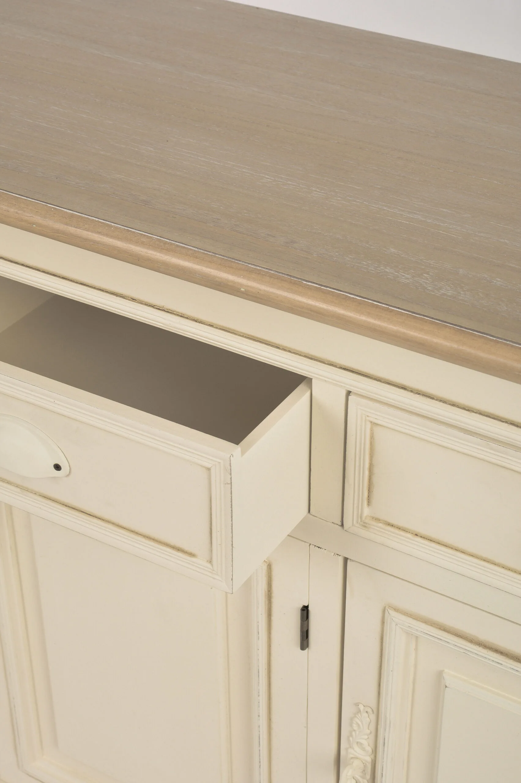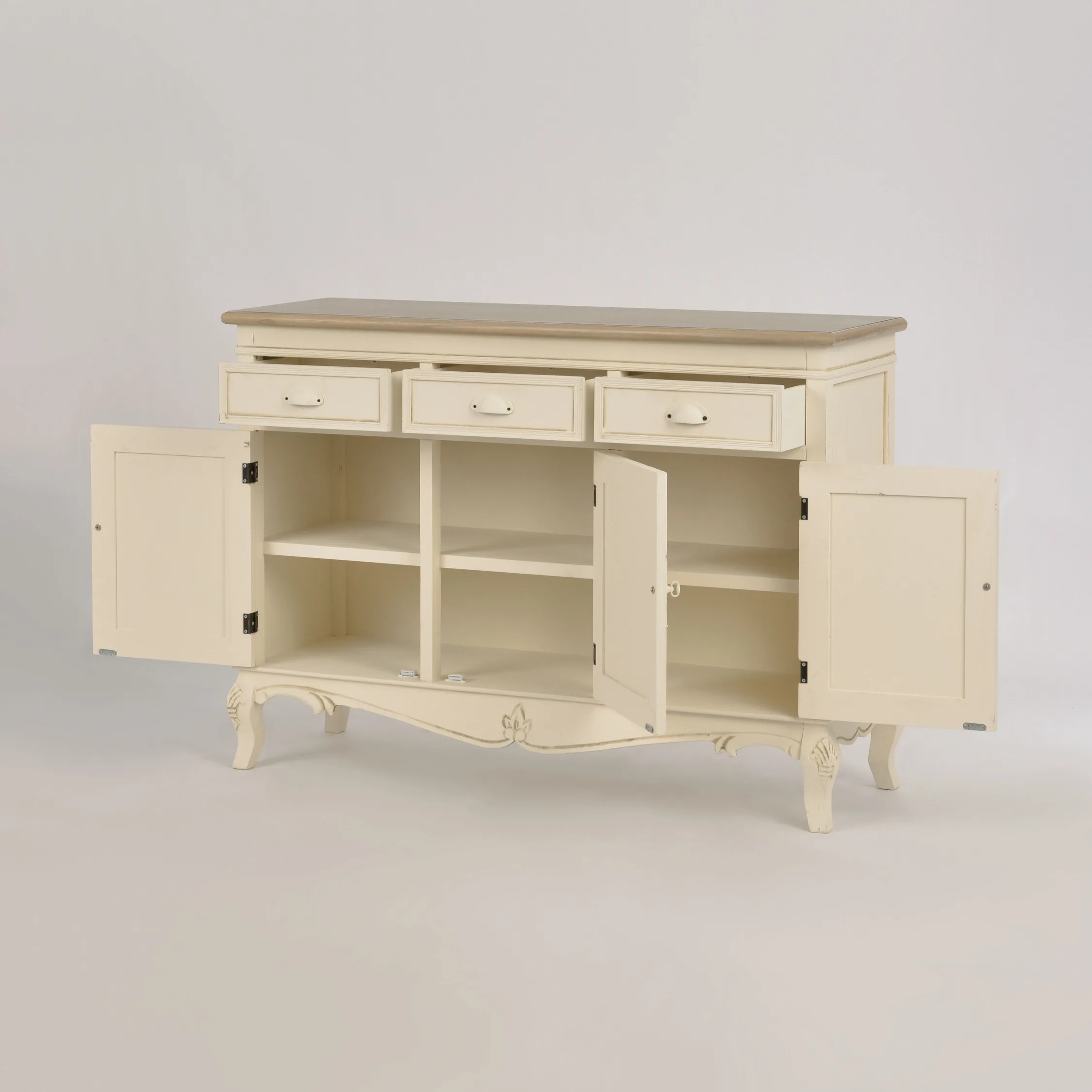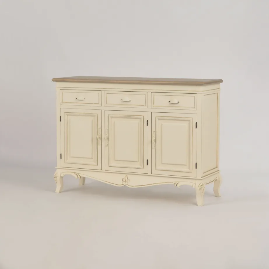 Täiendavad detailid: 3 ust ja 2 riiulit, mis pakuvad rohkelt hoiuruumi. Metallist käepidemed lisavad stiilset viimistlust.