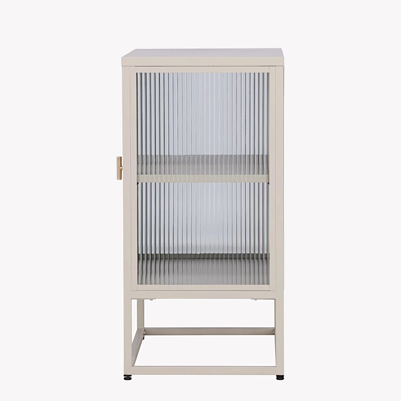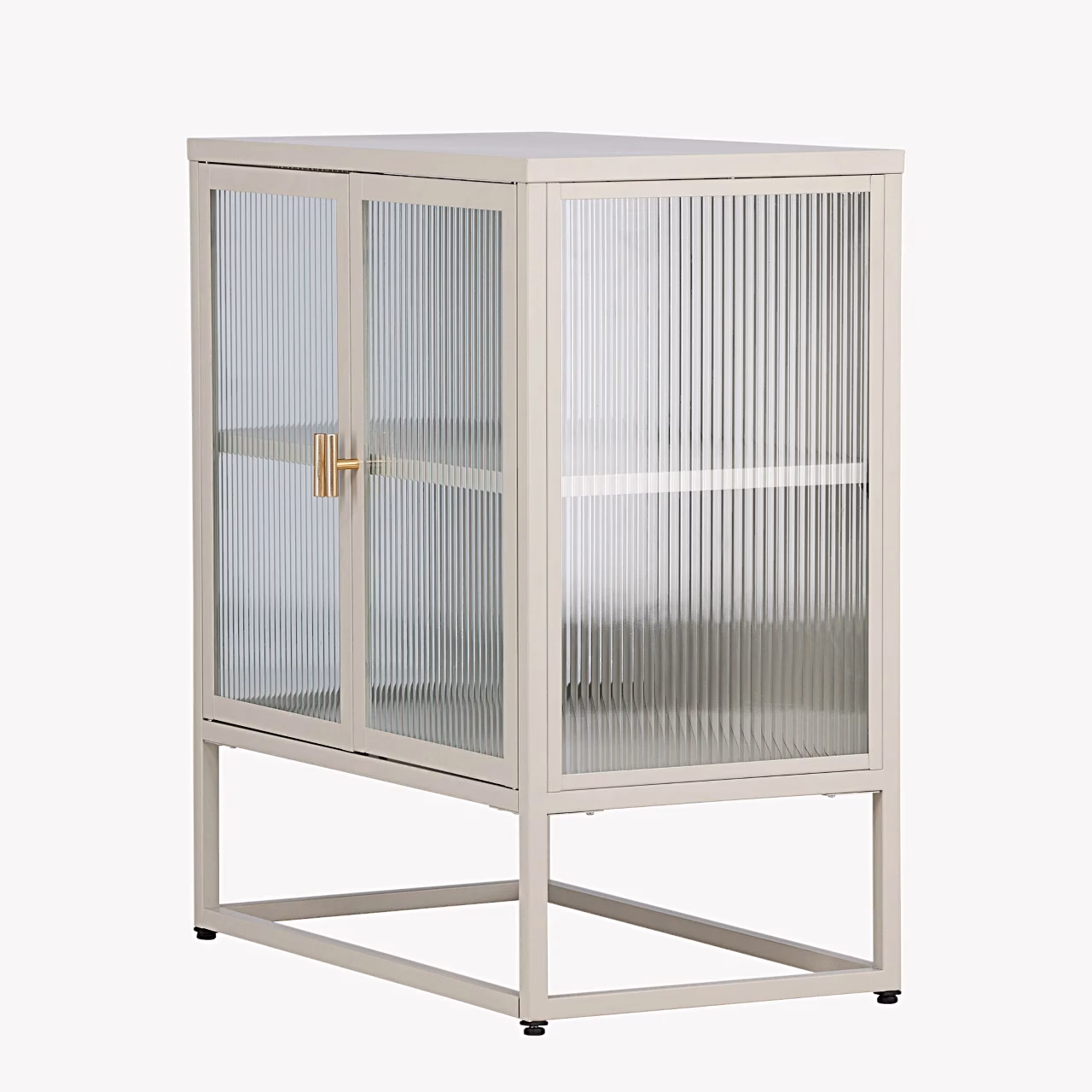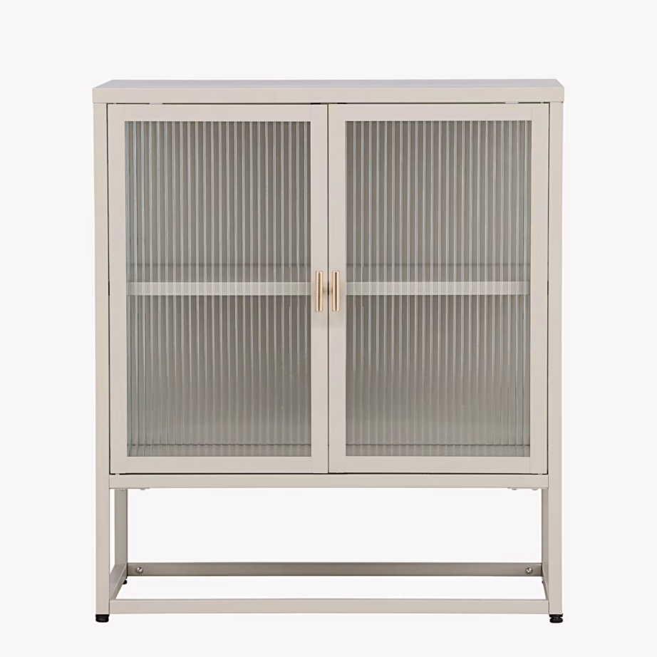 Beež klaasuksega kapp Garis on elegantne madal panipaik, mis sobib suurepäraselt elutuppa, esikusse, kööki või kodukontorisse. Minimalistlik terasest konstruktsioon ja heledas toonis viimistlus loovad modernse põhjamaise ilme, samas kui kahe ukse struktuurklaas peidab sisu diskreetselt, jättes mulje kergest ja õhulisest mööblist. Kapi sees olev riiul aitab Sul nõud, raamatud, dekoratsioonid või igapäevased tarbeesemed selgelt ära jaotada, nii et kõik vajalik on käepärast, kuid ei tekita visuaalset segadust. Tänu kompaktsetele mõõtudele on see nutikas lahendus ka väiksematesse ruumidesse, kus on vaja lisahoiuruumi ilma interjööri üle koormamata.