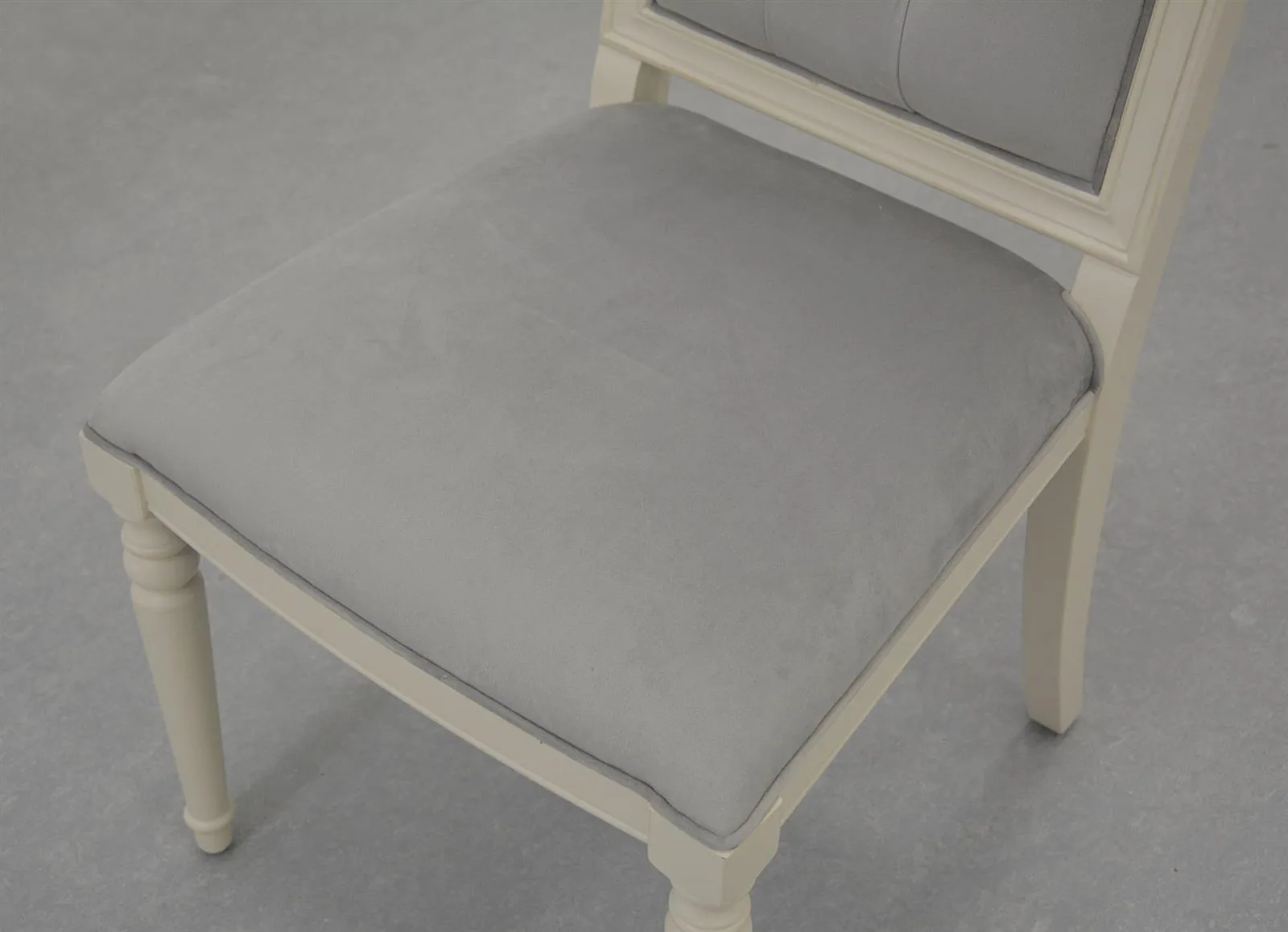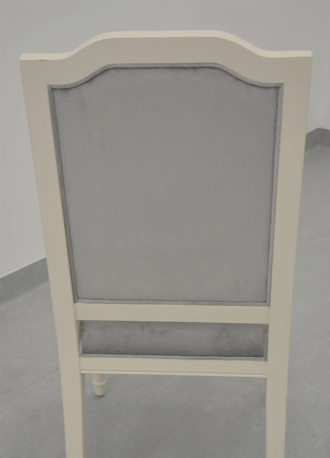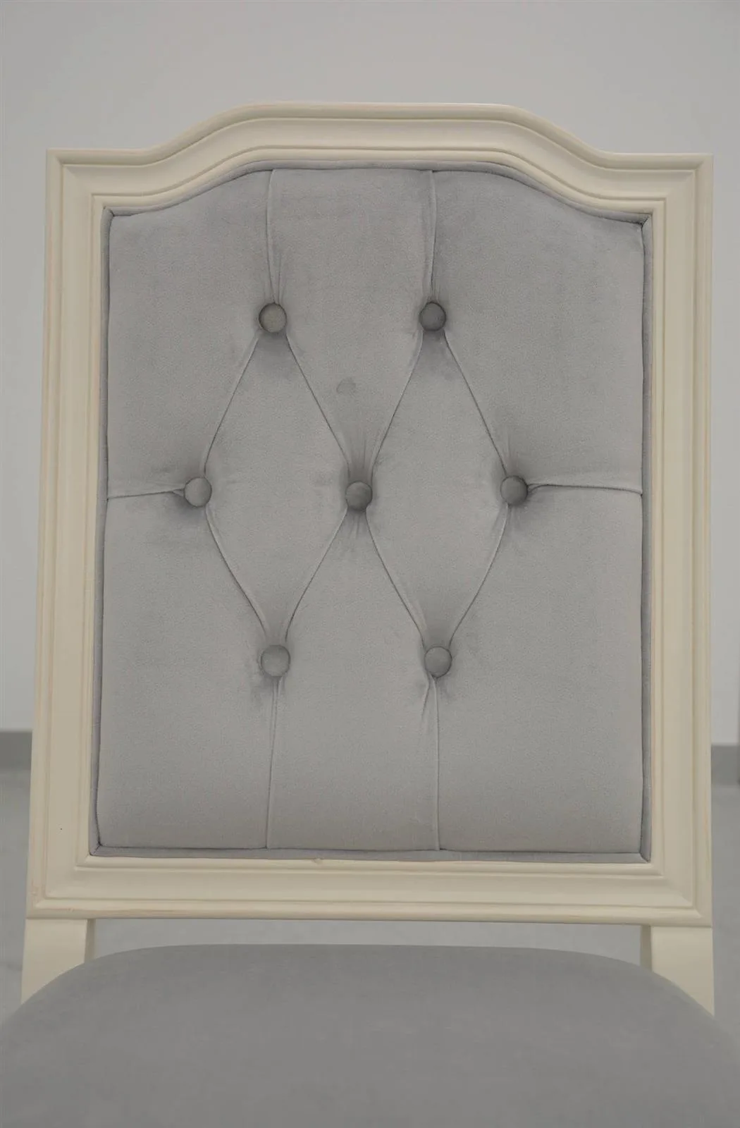 Dijon DI28 polsterdatud tool söögituppa. See stiilne tool, mis kuulub Dijon kollektsiooni, toob teie söögituppa provansaalse elegantsi. Tooli antiikvalge toon koos nähtava puidustruktuuriga loob ajatu ja kutsuva atmosfääri. Polsterdatud seljatugi ja halli sametmaterjaliga iste lisavad mugavust ja luksuslikkust igale söögikorrale.