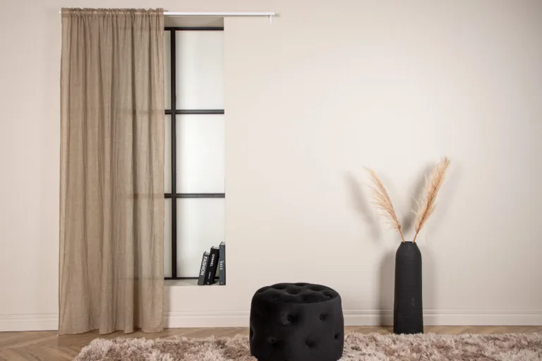 Beež polüesterkardin Elena – hubane valgusküllasus põhjamaise stiiliga