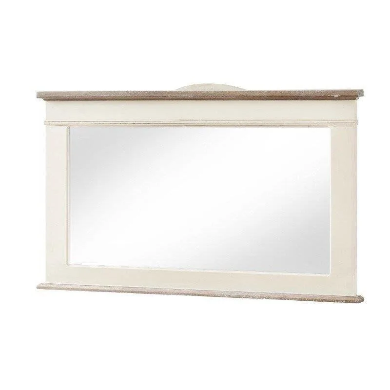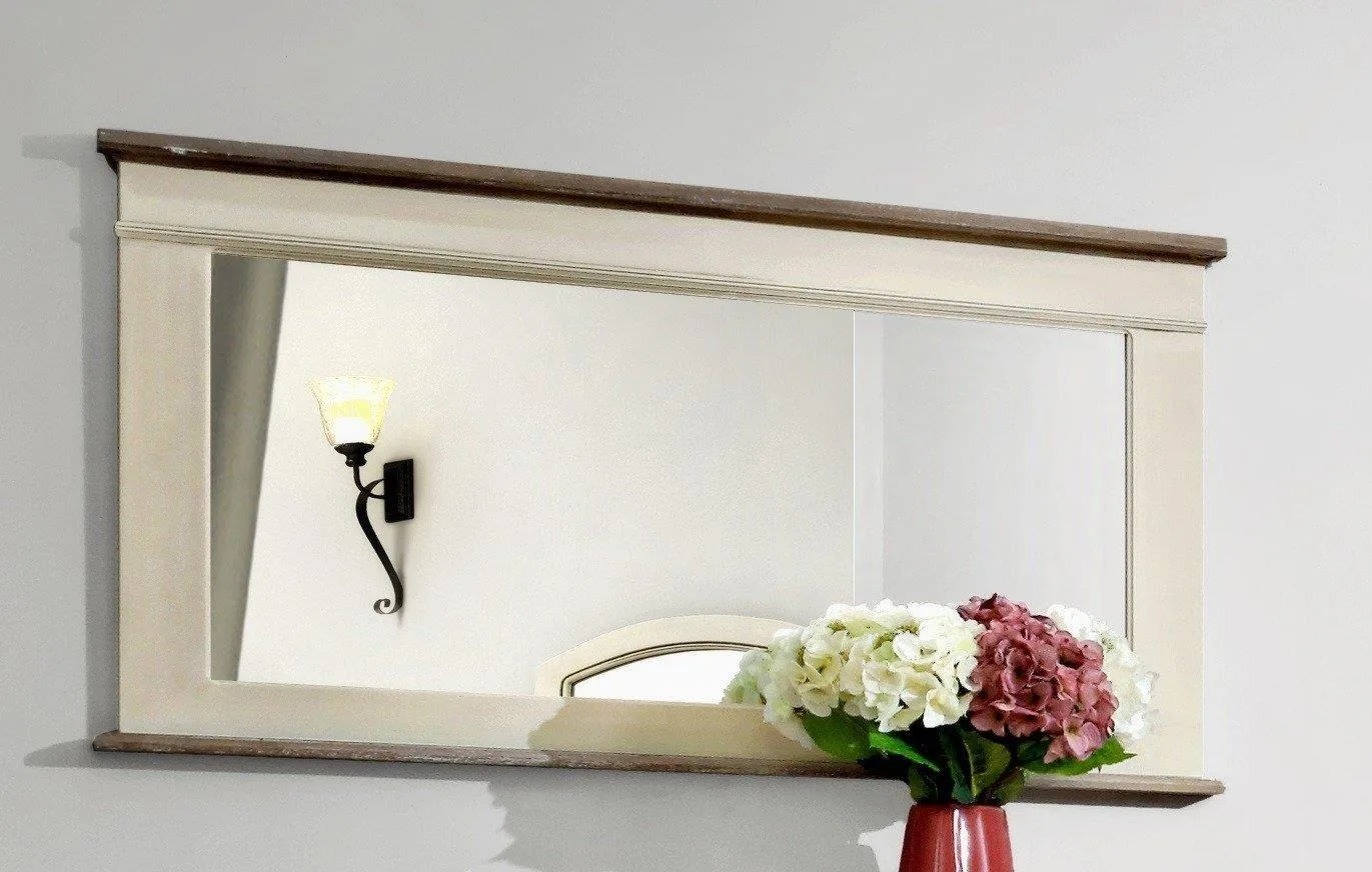 Rimini RI054 seinapeegel dekoratsioonideks. See peegel on inspireeritud Provencali stiilist, pakkudes elegantset ja ajatut välimust. Kreemjas toon koos pühitud helepruuni ülemise äärega loob õrna ja kutsuva atmosfääri, mis täiendab igat ruumi.