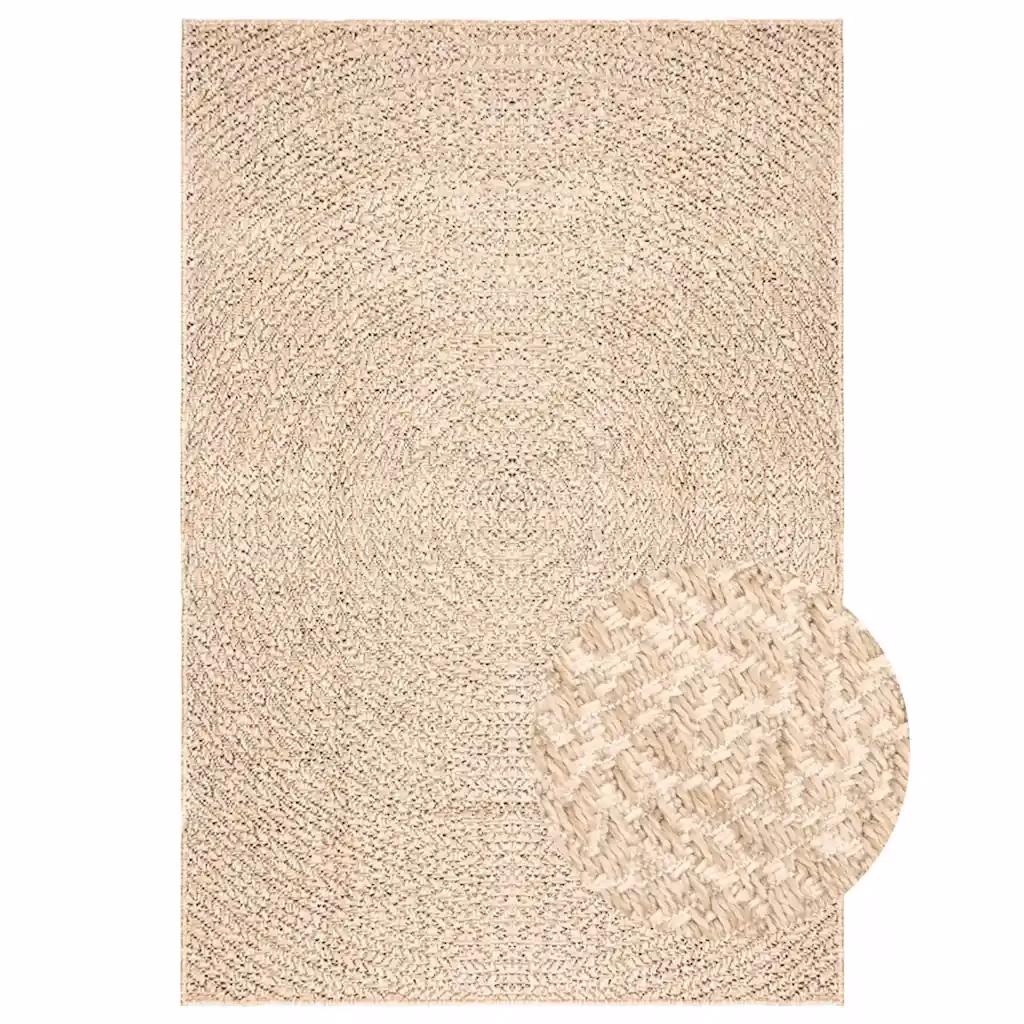 ZIZUR beež sise- ja õuevaip ühendab loodusliku džuudimustrilise välimuse ja praktilise 100% polüpropüleenmaterjali. Vaip sobib kasutamiseks nii elutoas, esikus ja köögis kui ka terrassil või rõdul, lisades ruumile soojust ja kaitstes põrandat mustuse eest.