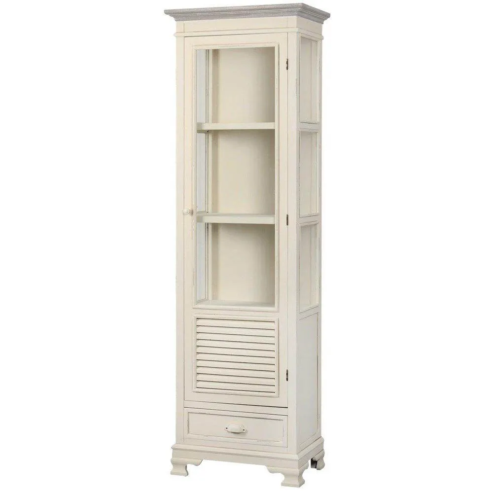 Pesaro PE043 vitriinkapp elutuppa. See käsitsi värvitud vitriinkapp toob teie elutuppa Provence’i stiili võlu. Kapp seisab elegantselt freesitud jalgadel ning sellel on metallist käepidemed, mis meenutavad merekarpe. Kapi kreemjas matt viimistlus koos heleda pruuni poolmati viimistlusega rõhutab puidu struktuuri ja lisab ruumile soojust.