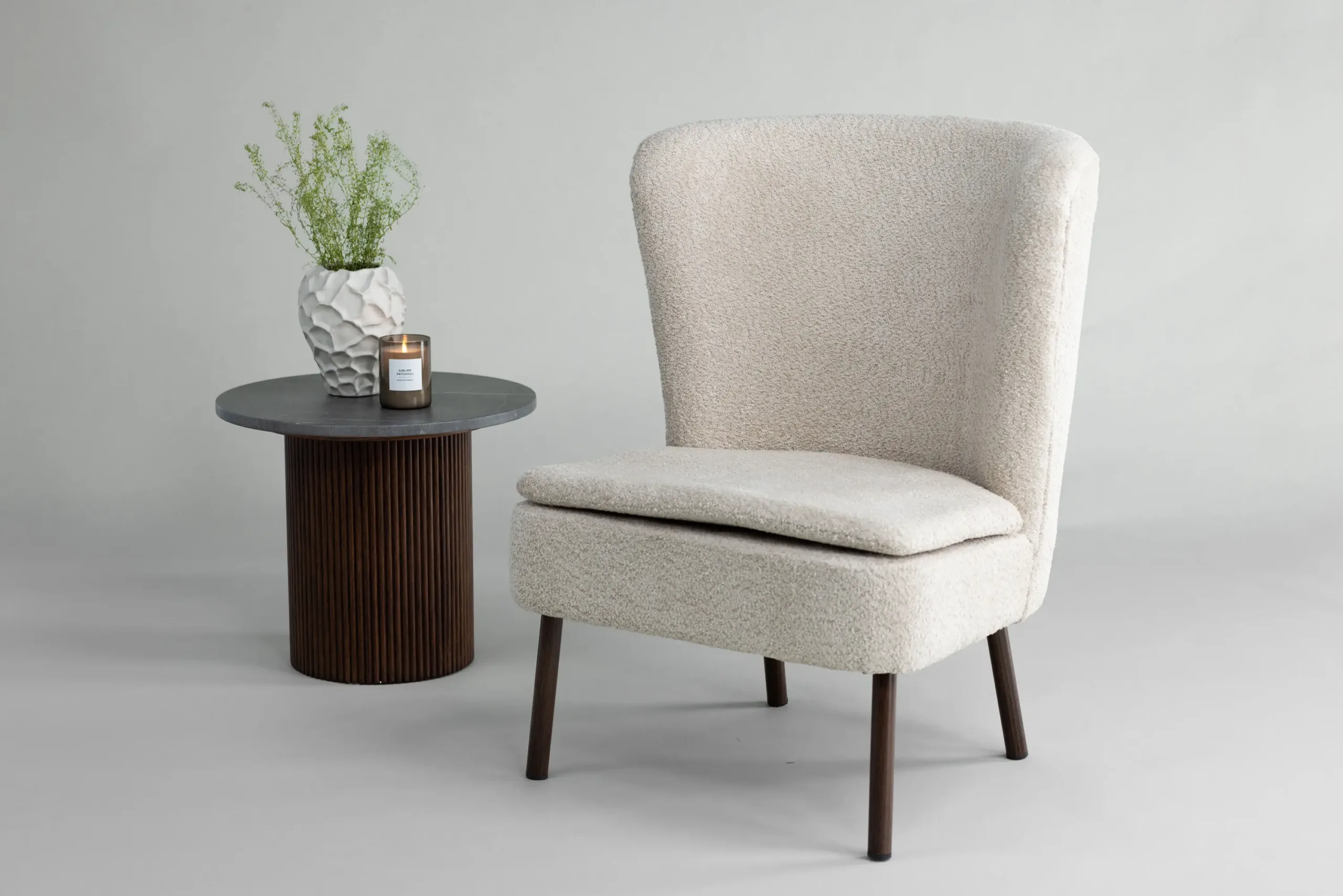 Beež buklee tugitool Hällsö ühendab endas kaasaegset disaini, suurepärast istumismugavust ja põhjamaisele interjöörile sobilikku neutraalsust. See tugitool sobib suurepäraselt elutuppa, magamistuppa või avarasse lugemisnurka, lisades igasse ruumi hubasust ja soojust.