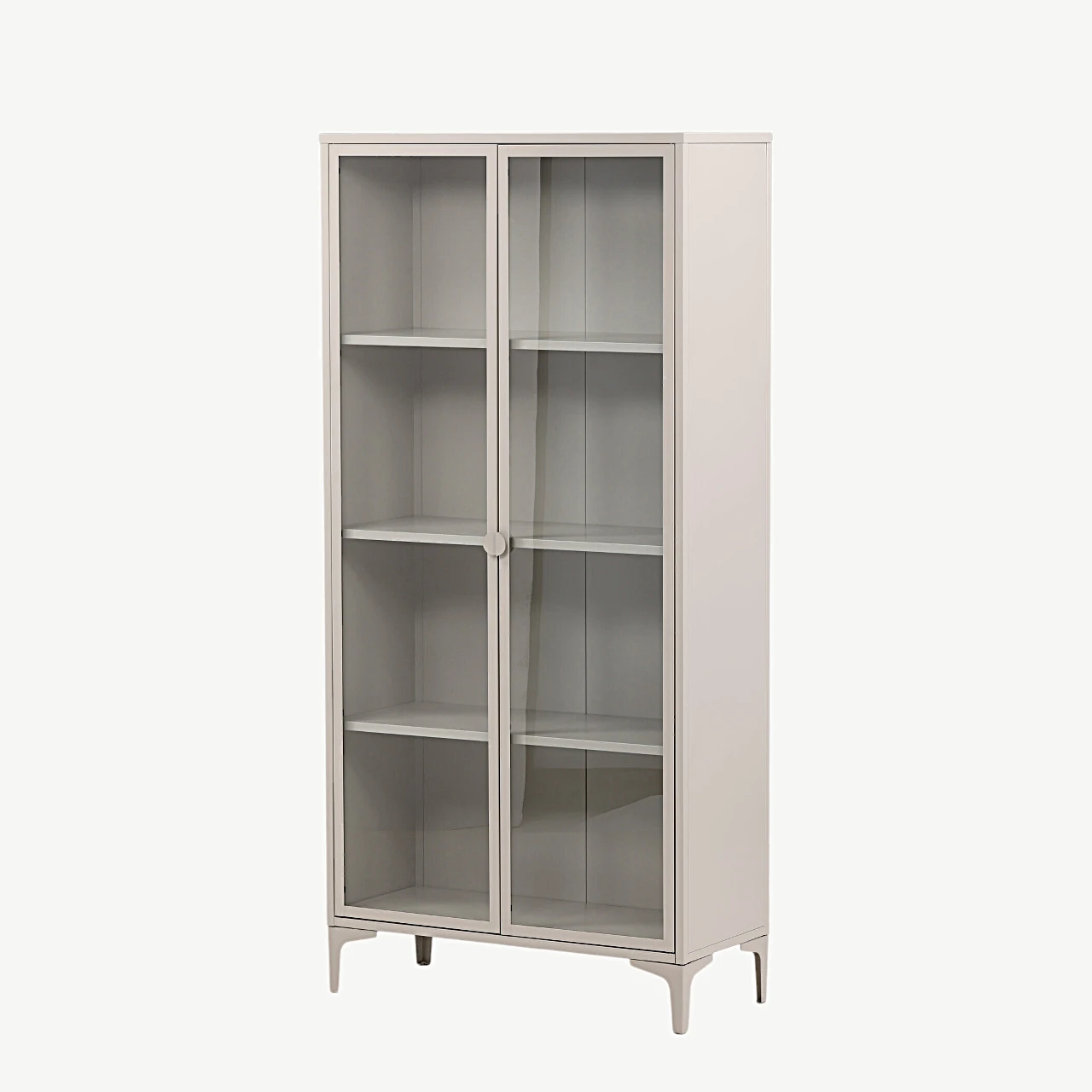Beež terasest vitriinkapp Piring on elegantne ning kaasaegne mööbliese, mis ühendab läbimõeldud disaini ja nutika panipaiga. Minimalistliku joone ja sirgete vormidega kapp on valmistatud vastupidavast, pulbervärvitud terasest ning viimistletud rahulikus beežis toonis, mis sobitub suurepäraselt põhjamaise või modernse interjööriga.