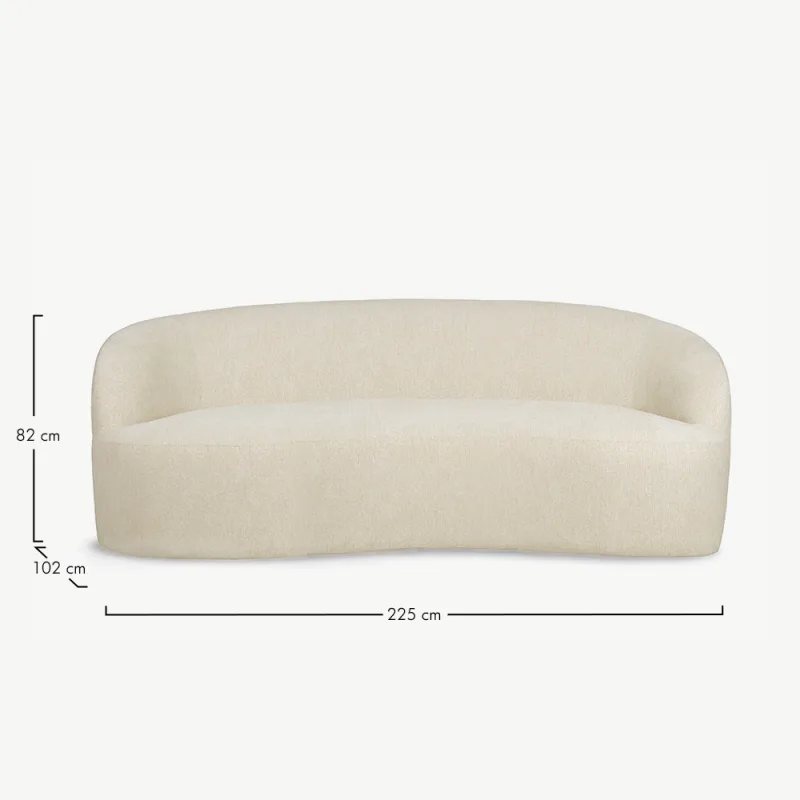 Diivani kaarjas vorm pakub ainulaadset esteetilist lahendust, mis lisab ruumile dünaamilisust ja pehmust. Kreemjas toon täiendab erinevaid sisustusstiile, olgu see siis modernne, skandinaavialik või klassikaline. Tänu oma elegantsele ilmele sobib see diivan nii kodusesse elutuppa kui ka esinduslikku ootesaali.