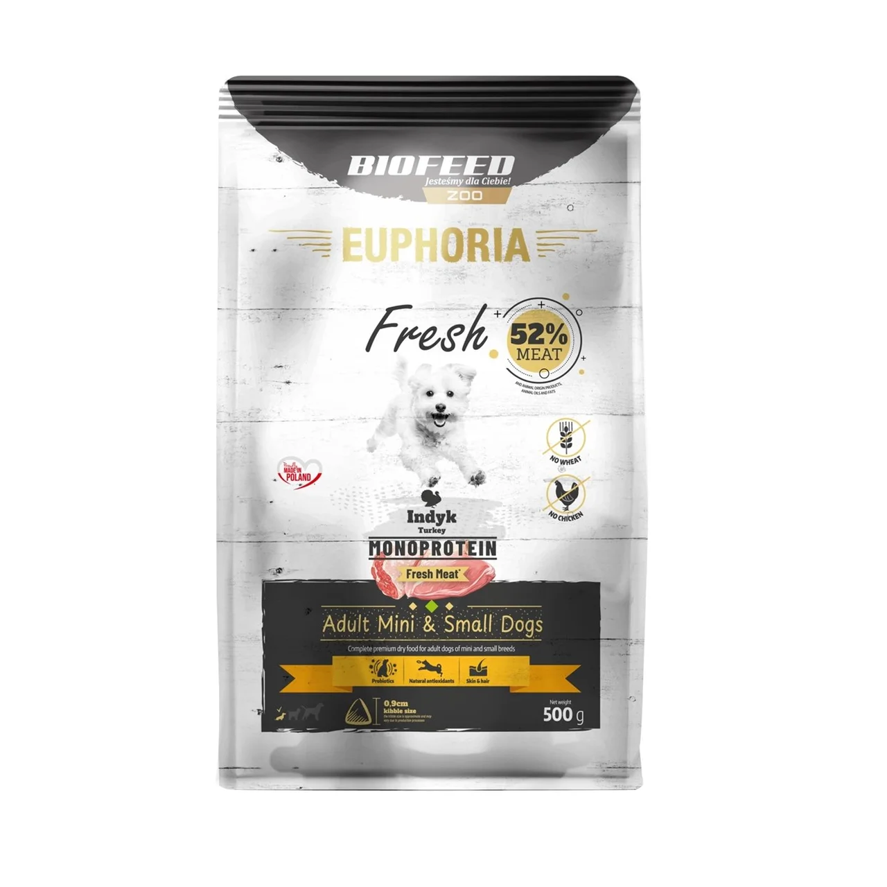 BIOFEED Euphoria Fresh Turkey XS/S 500g gluteenivaba täissööt väikest tõugu täiskasvanud koertele