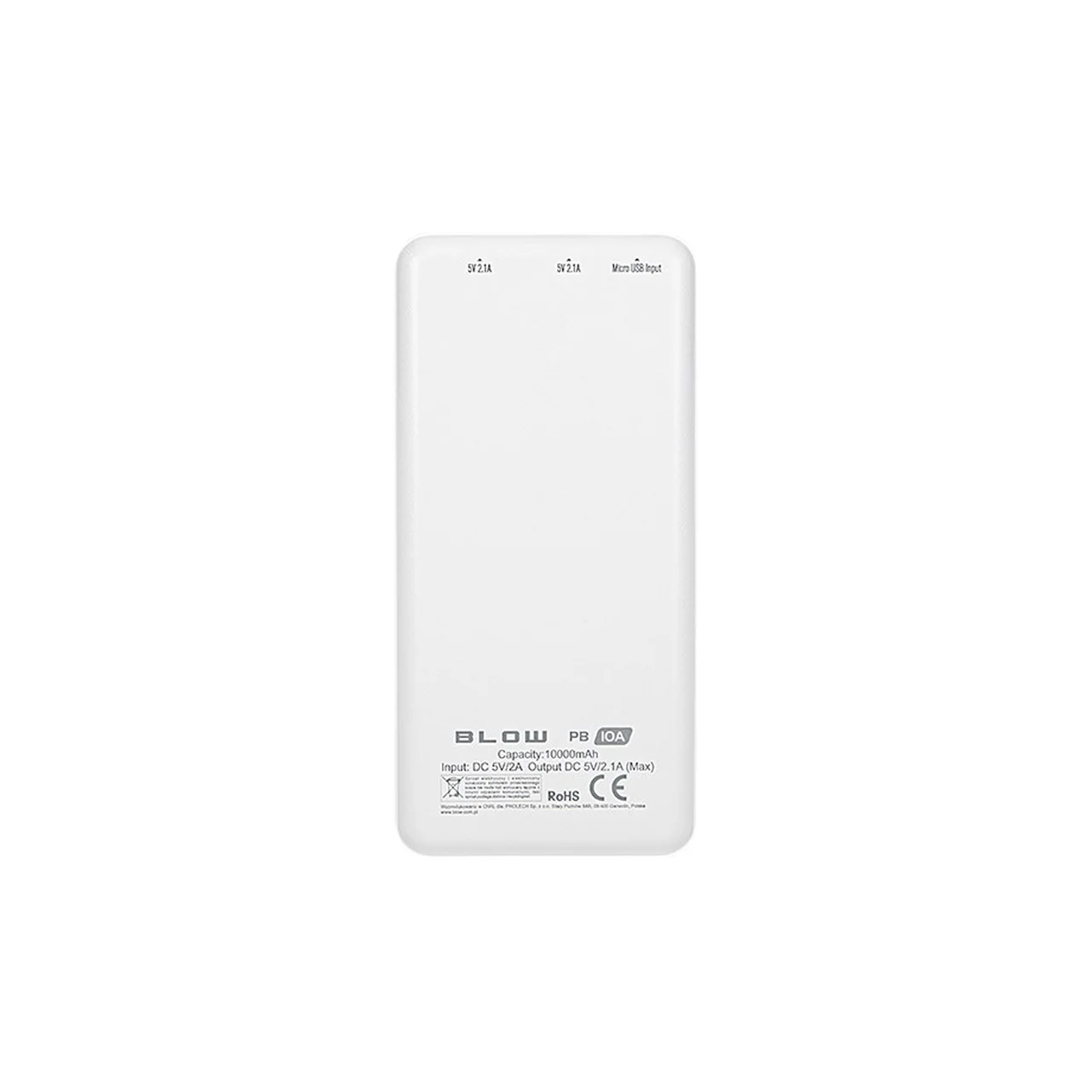 BLOW PB10A 10000mAh 22,5W valge universaalne akupank, 2 USB väljundiga, kaitsefunktsioonidega