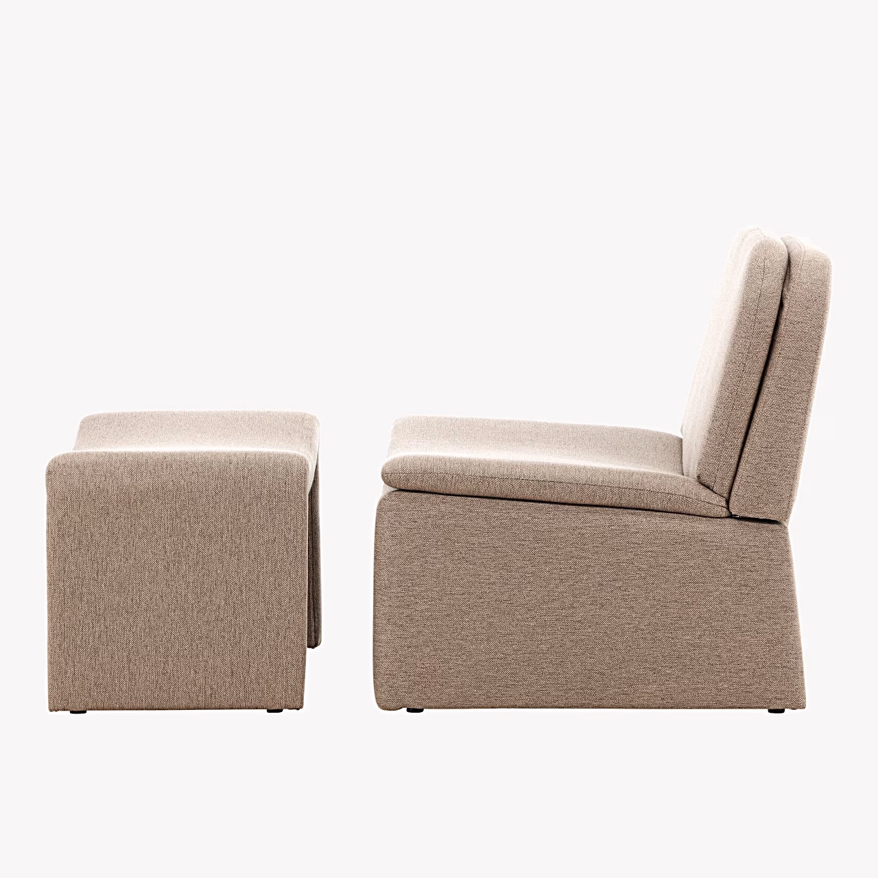 Komplekti kuuluv tumbad on disainitud tugitooli joont järgima – sama kõrgus ja laius loovad visuaalselt ühtse terviku. Seda saab kasutada jalatoena lõõgastumiseks, kuid vajadusel ka lisaistekohana külalistele. Tänu samale kangale ja toonile jääb tumbad ruumis tagasihoidlikuks, kuid funktsionaalseks osaks.