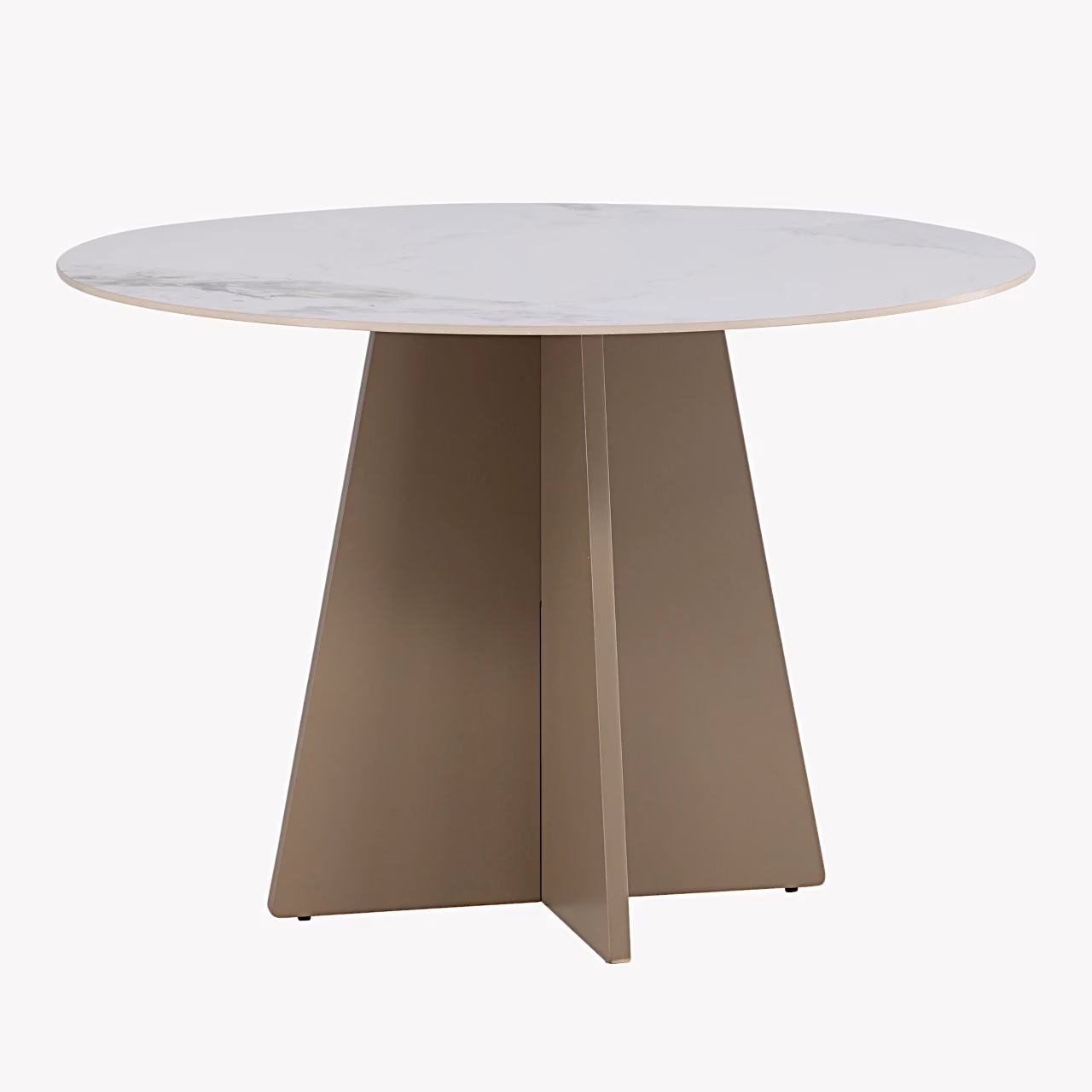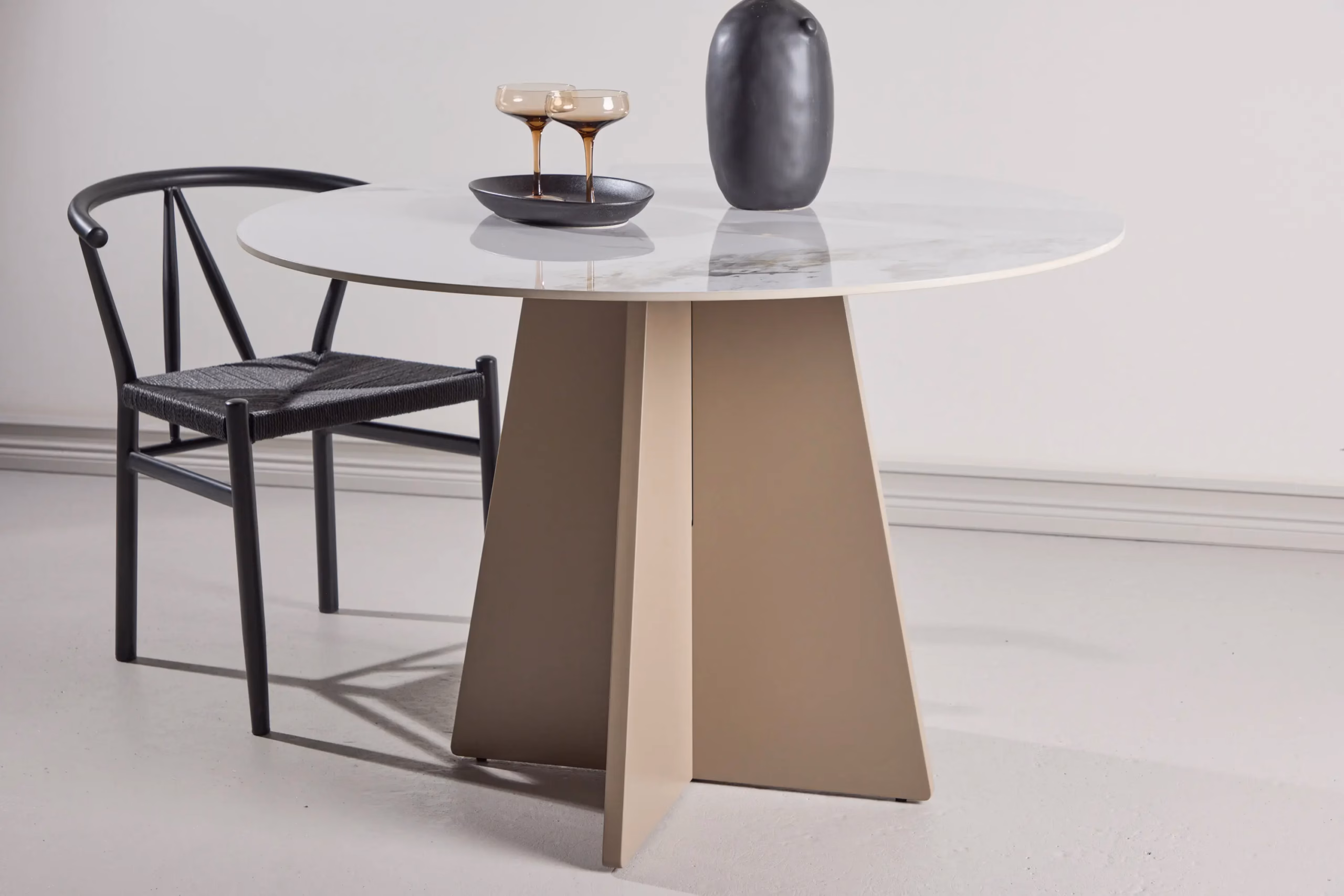 Bootcut ümmargune söögilaud on elegantne ja funktsionaalne valik, kui soovid oma söögitoa või avatud köögi muuta hubaseks kohtumispaigaks. 110 cm läbimõõduga lauaplaat mahutab mugavalt kuni neli inimest, sobides suurepäraselt nii igapäevasteks peretoidukordadeks kui ka nädalavahetuse külaliste võõrustamiseks. Sinterkivist beeži marmori ilmega plaadi ja skulptuurse MDF-jala kombinatsioon loob modernse põhjamaise ilme, mis sobitub hästi nii heledate kui ka tumedamate interjööridega. Tugev konstruktsioon ja kvaliteetsed materjalid tagavad, et laud näeb ilus välja ja teenib Sind usaldusväärselt aastaid.