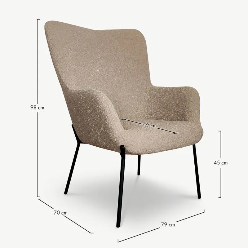 Bouclé tugitool on luksuse kehastus, kus disain kohtab puhta mugavusega. Selle rikkalik tumedat beeži bouclé kangas ei jää ainult silmatorkavaks, vaid kutsub end ka puudutama, lubades võrreldamatut lõõgastust. Alustades mahedast tekstuurist kuni pehme polsterduseni, on iga element hoolikalt kavandatud, et täiustada teie puhkehetki.
